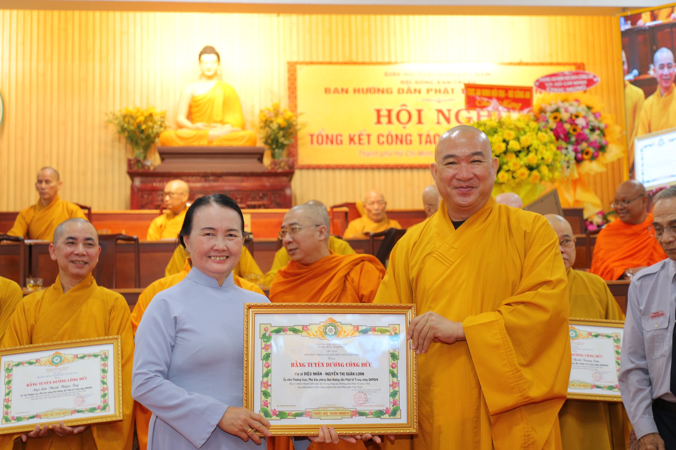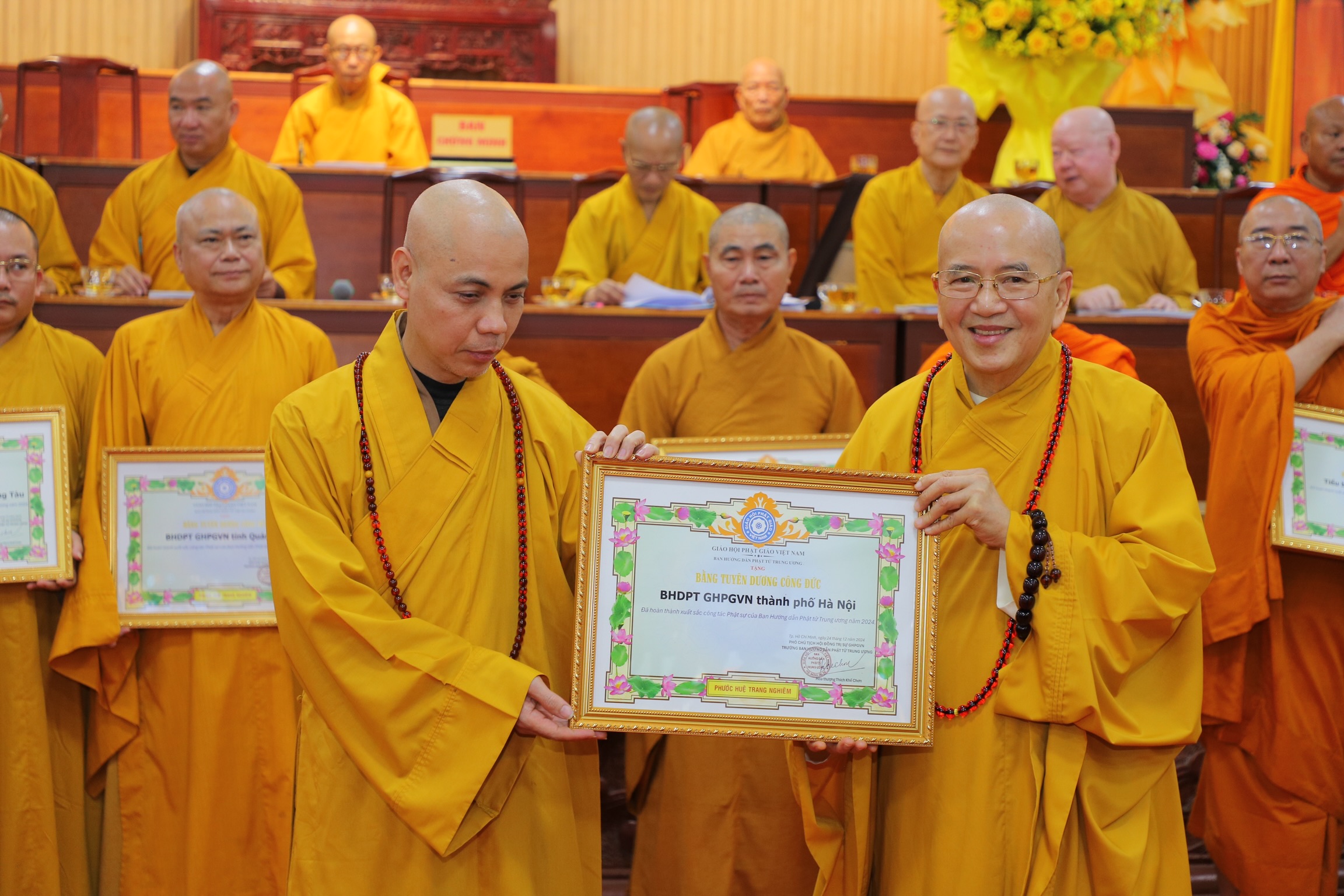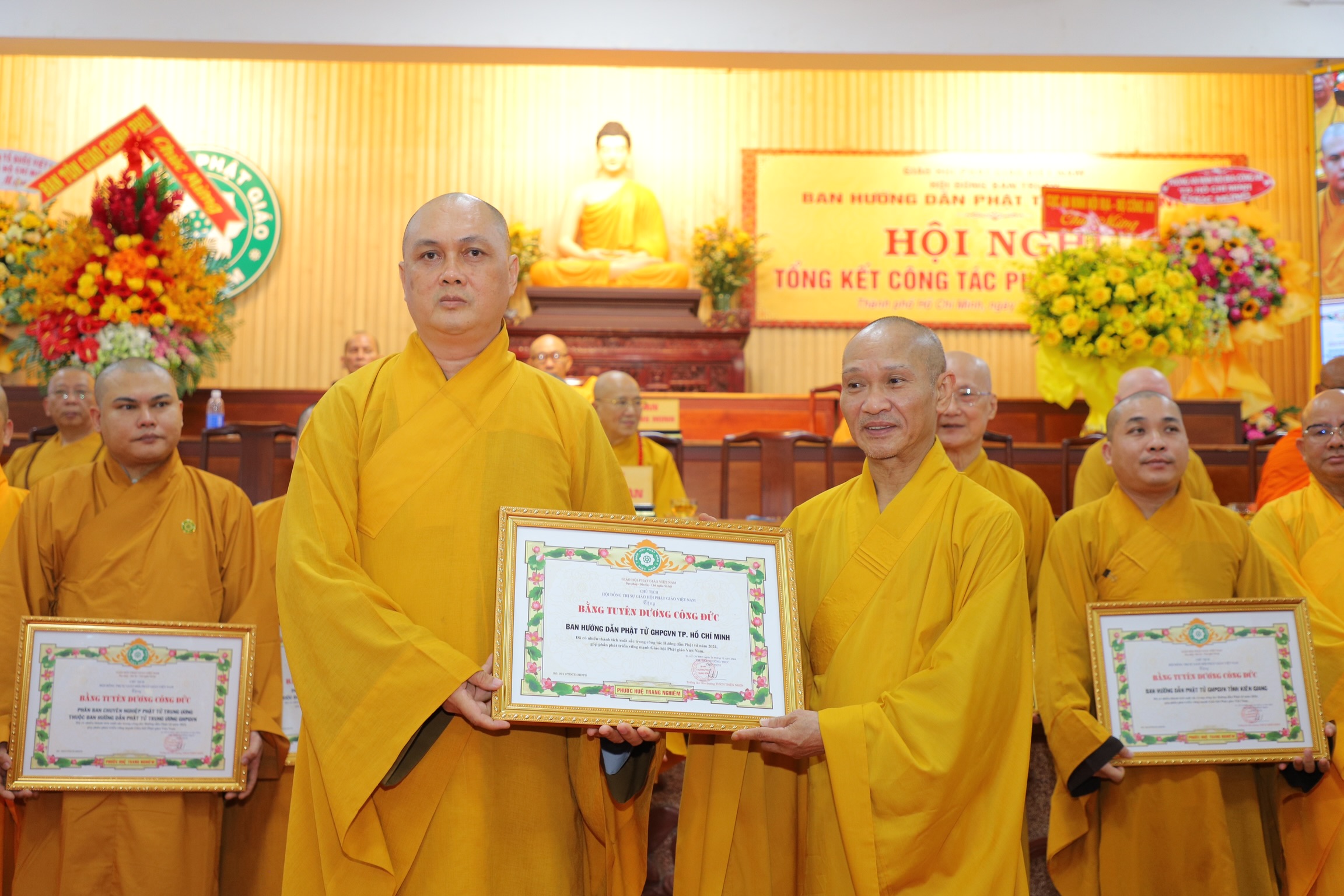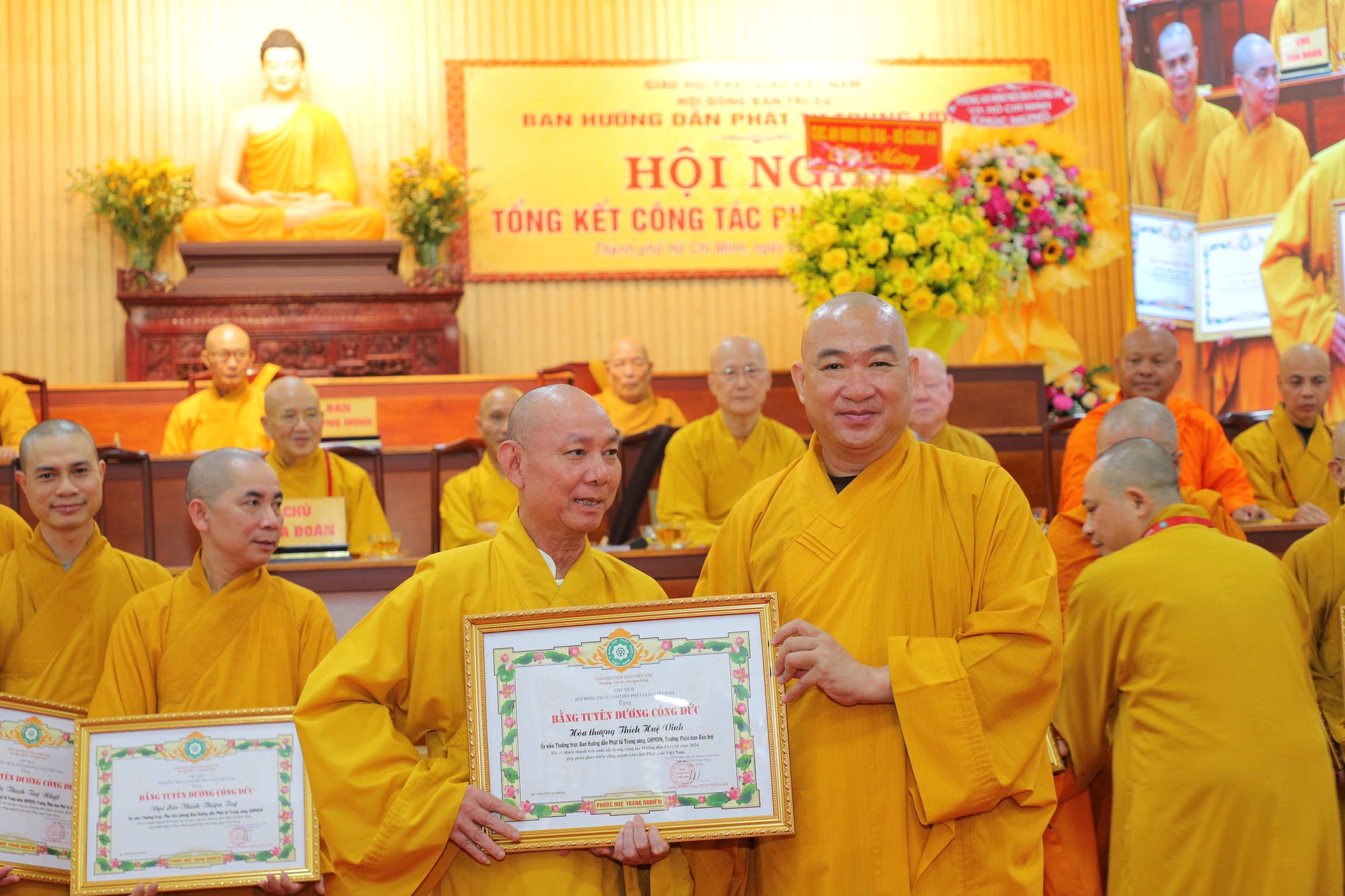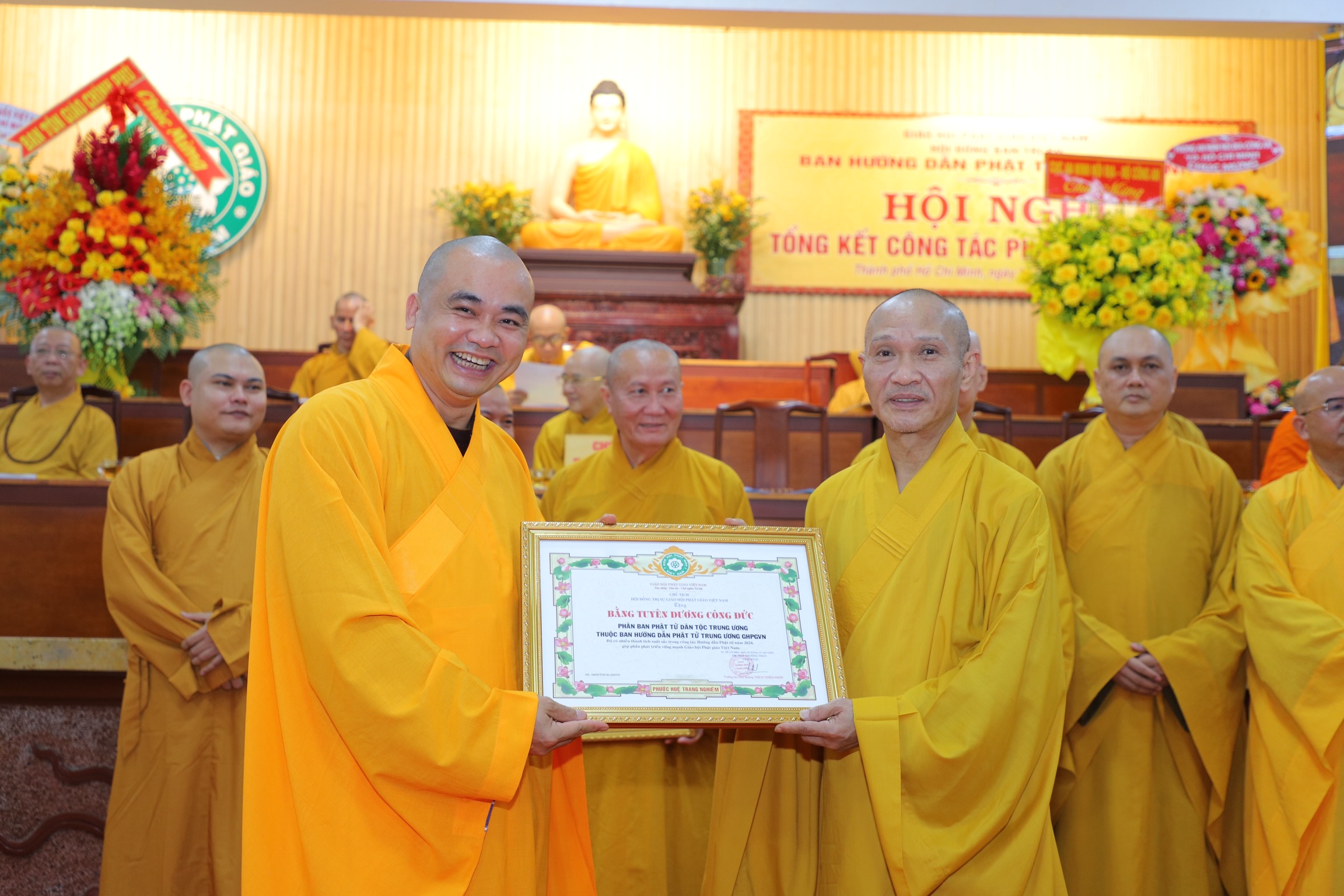 Tại hội nghị, TƯGH tặng Bằng tuyên dương công đức đến 15 tập thể và 34 cá nhân thuộc Ban Hướng dẫn Phật tử T.Ư; Ban Hướng dẫn Phật tử T.Ư tặng Bằng tuyên dương công đức đến nhiều tập thể và cá nhân đã hoàn thành xuất sắc công tác Phật sự của Ban năm 2024.