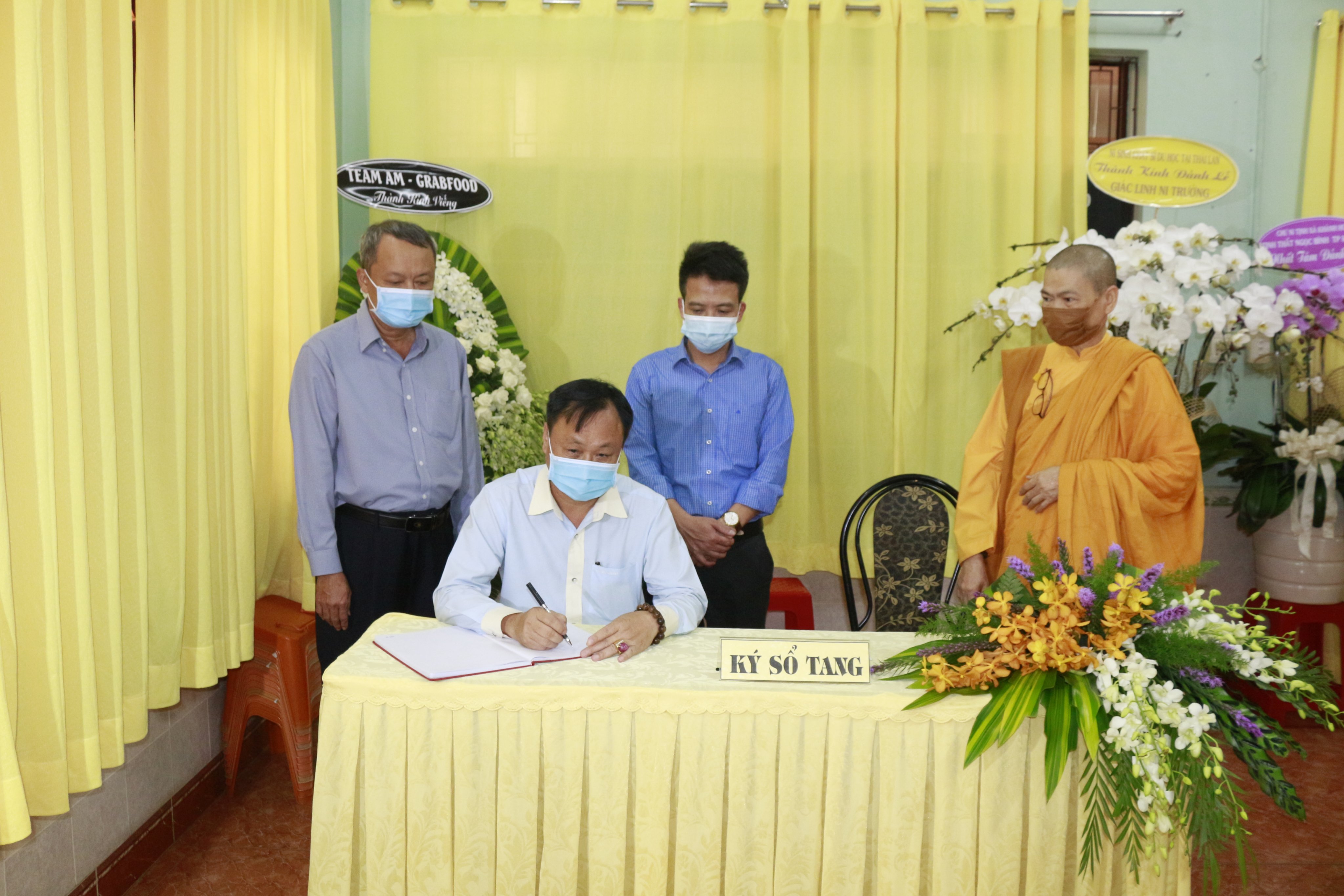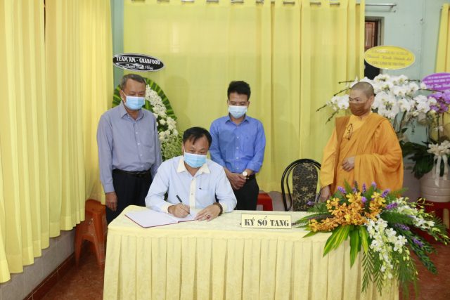 Sau phần kính viếng, phái đoàn hữu nhiễu kim quan Ni trưởng và quá bước đến bàn ký sổ tang lưu niệm.