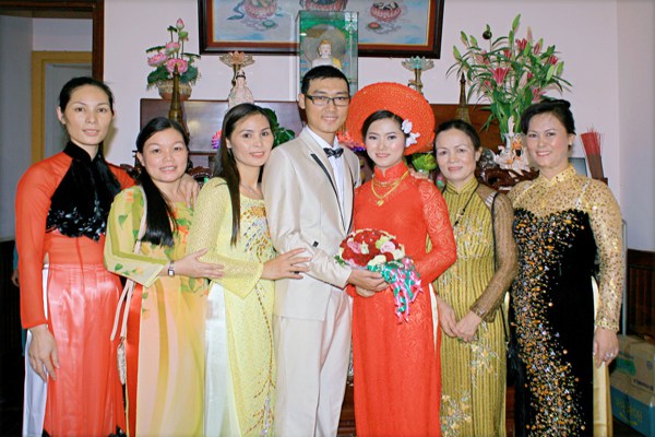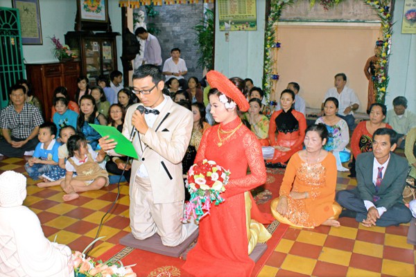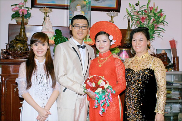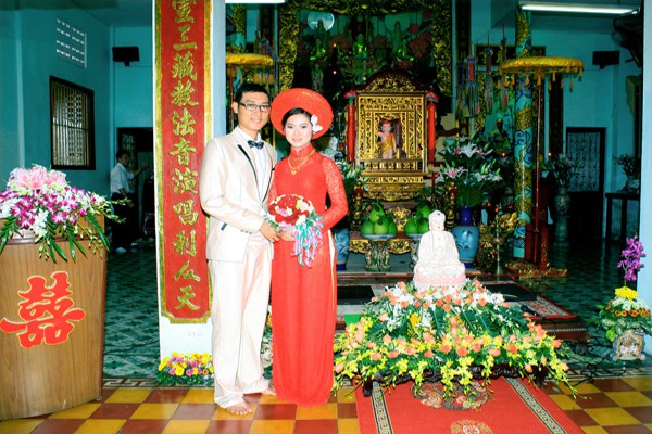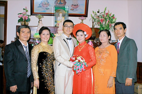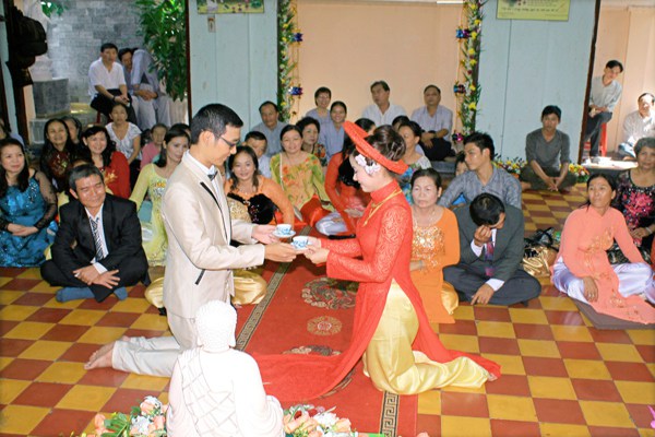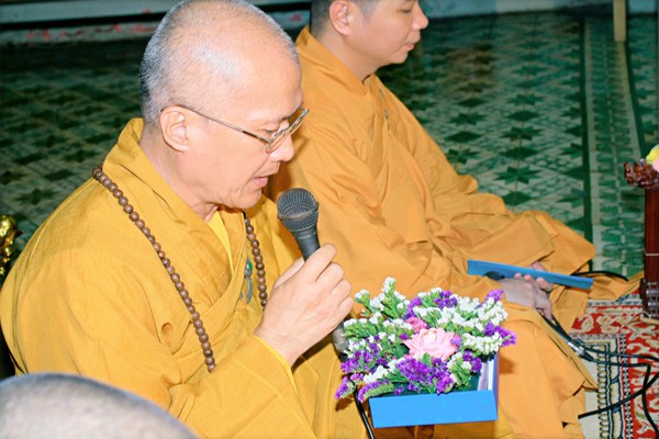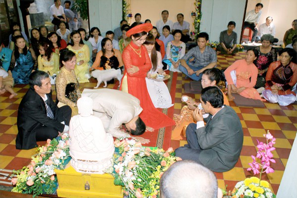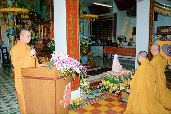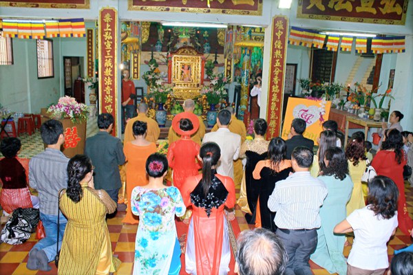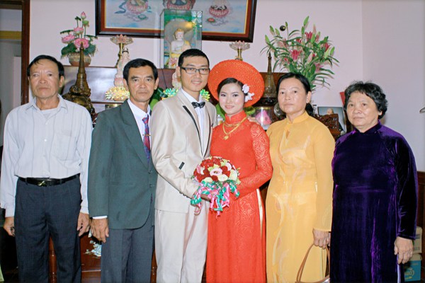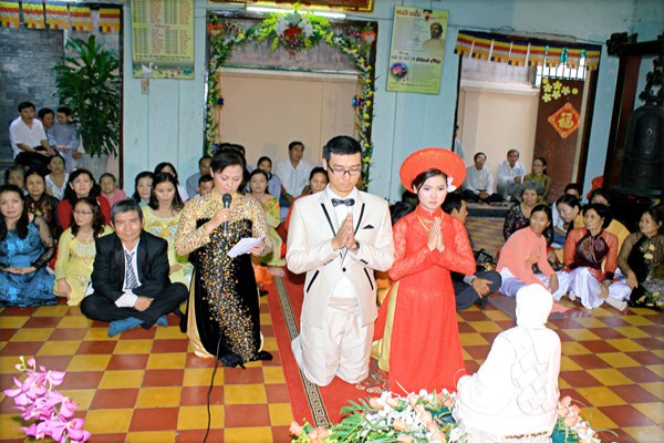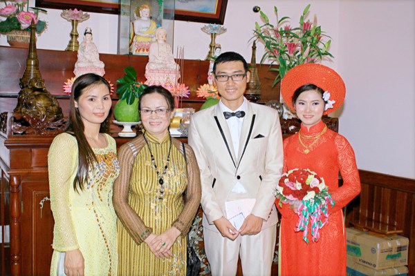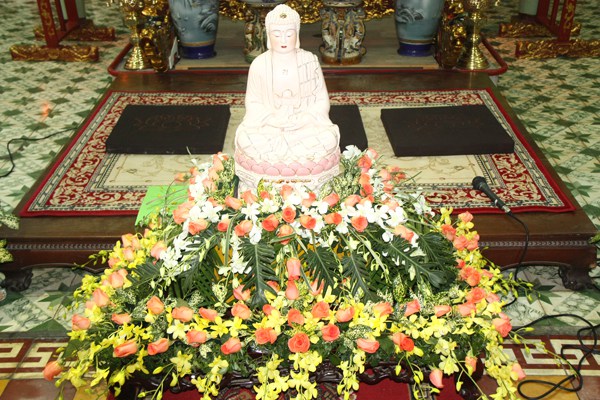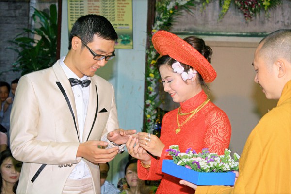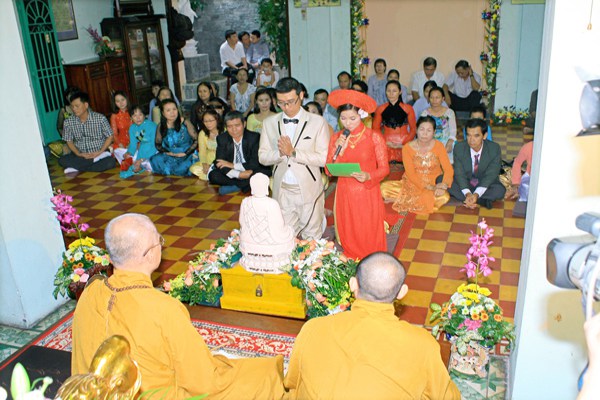 Chứng minh chúc phúc buổi lễ có sự hiện diện của TT. Thích Chơn Không, Phó Ban Hướng dẫn Phật tử TW, trụ trì chùa Thiên Tôn, Q. 5, ĐĐ. Thích Giác Đạo, ĐĐ. Thích Thanh Thắng và quý Phật tử bản tự cùng quan khách hai họ.
