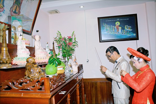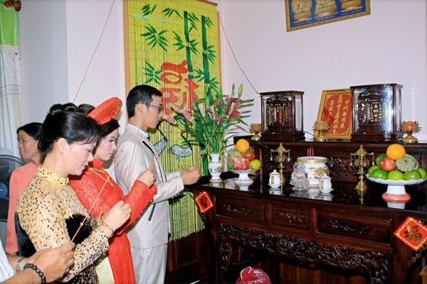 Sau khi lễ Hằng Thuận xong, hai họ về tư gia lễ Tổ tiên.
