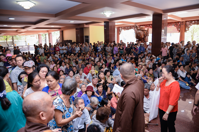 Hòa Thượng Thích Trí Quảng, đệ nhất Phó Pháp chủ HĐCM,, Trưởng Ban trị sự GHPGVN Thành Phố HCM cùng chư tôn đức thường trực trao tặng 3000 phần quà đến bà con khó khăn quận 10, quận Tân Bình và huyện Bình chánh được vui xuân đón tết Mậu Tuất.