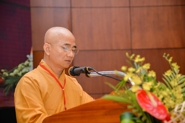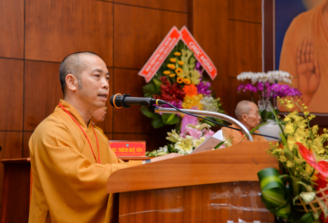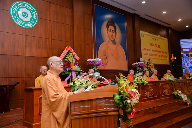 Tại buổi lễ, thay mặt Ban tổ chức, TT.Thích Thiện Quý – Phó ban kiêm Chánh thư ký BTS PG TP.HCM, báo cáo công tác tổ chức Hội nghị sinh hoạt hành chánh Giáo hội và Bồi dưỡng trụ trì năm 2018.