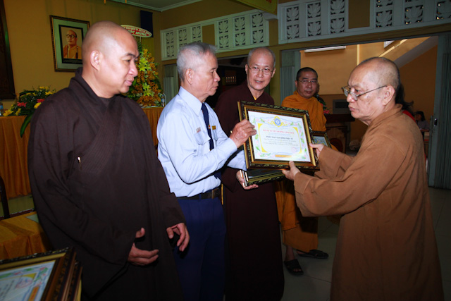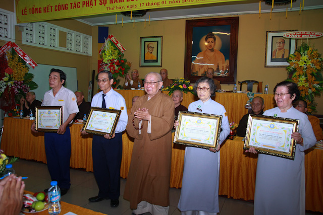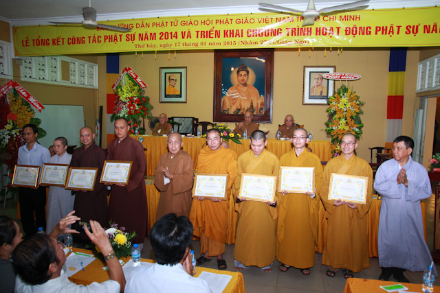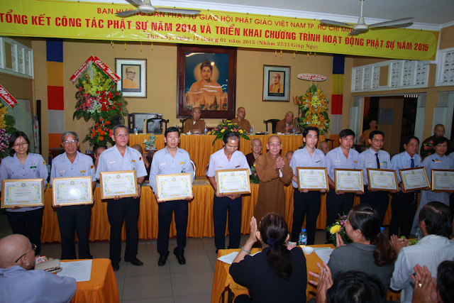Với những thành công về Phật sự mà BHPT PG TP.HCM đã đạt được, Thường trực BTS PG TP.HCM đã quyết định trao bằng Tuyên dương công đức và bằng công đức cho Cá nhân và Tập thể có những đóng góp tích cực cho BDH PT PG TP.HCM trong năm 2014.
