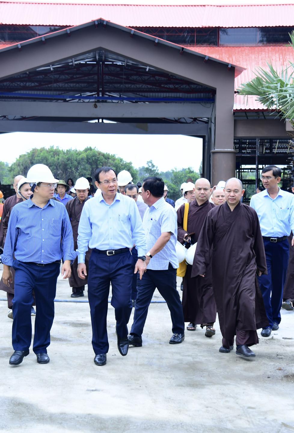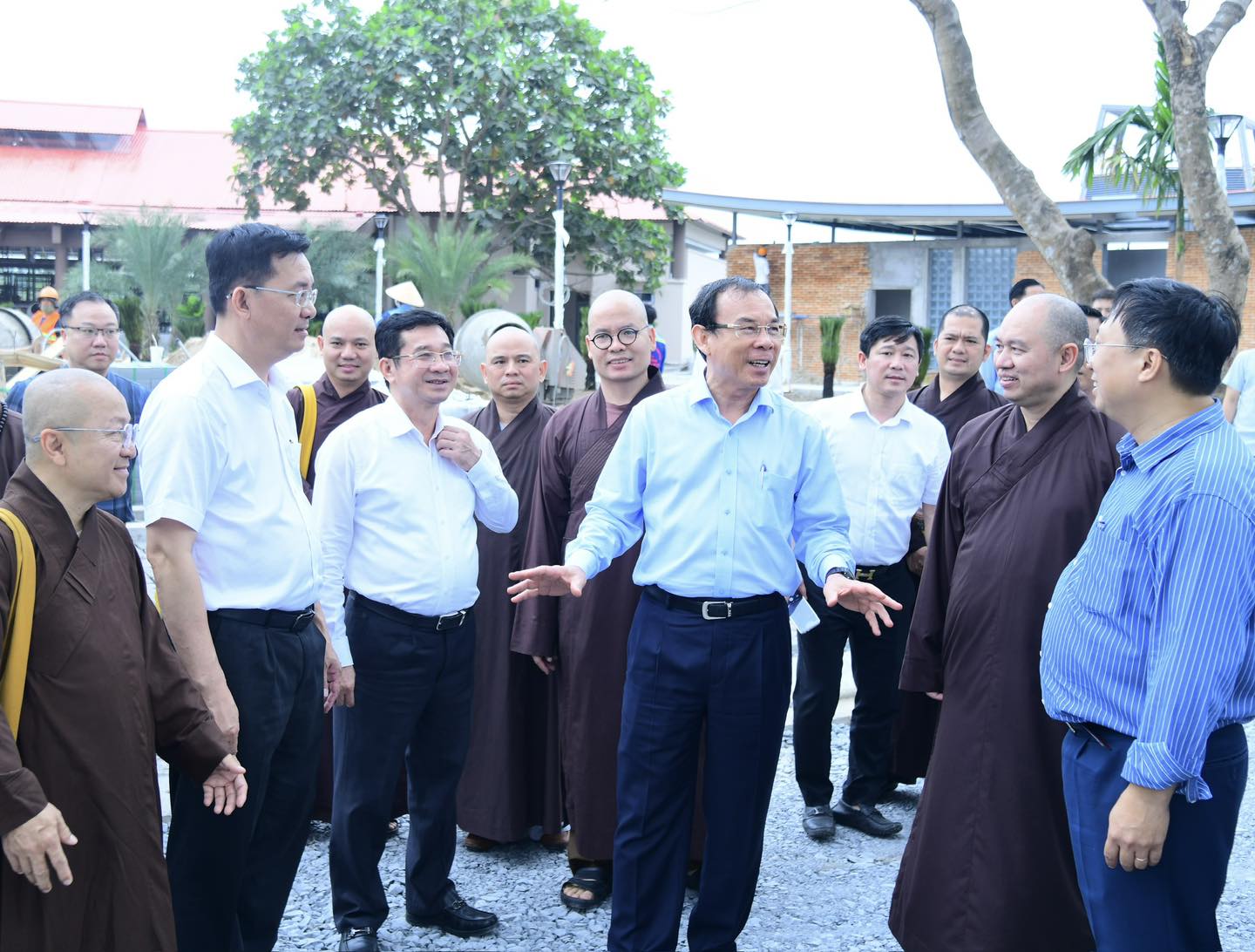 Tháp tùng Bí thư Thành uỷ có ông Dương Ngọc Hải – Uỷ viên BTV Thành uỷ, Phó Chủ tịch Thường trực UBND Thành phố; ông Nguyễn Duy Tân – Giám đốc Sở Dân tộc và Tôn giáo; ông Nguyễn Thanh Nhã – Thành uỷ viên, Bí thư Huyện uỷ Bình Chánh. Cùng đi có đại diện các sở, ngành trực thuộc, đại diện UBND huyện Bình Chánh và các cơ quan có liên quan.