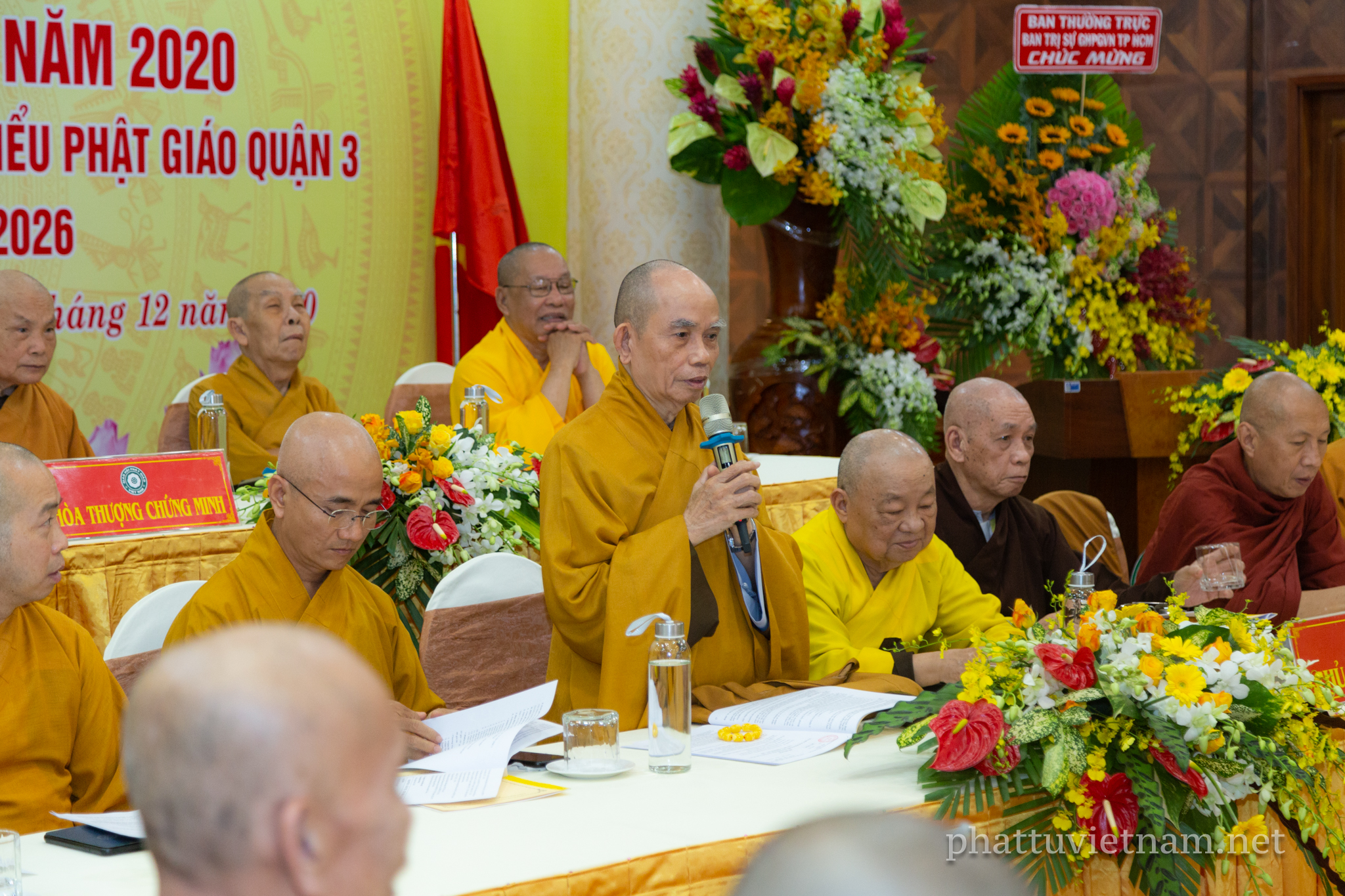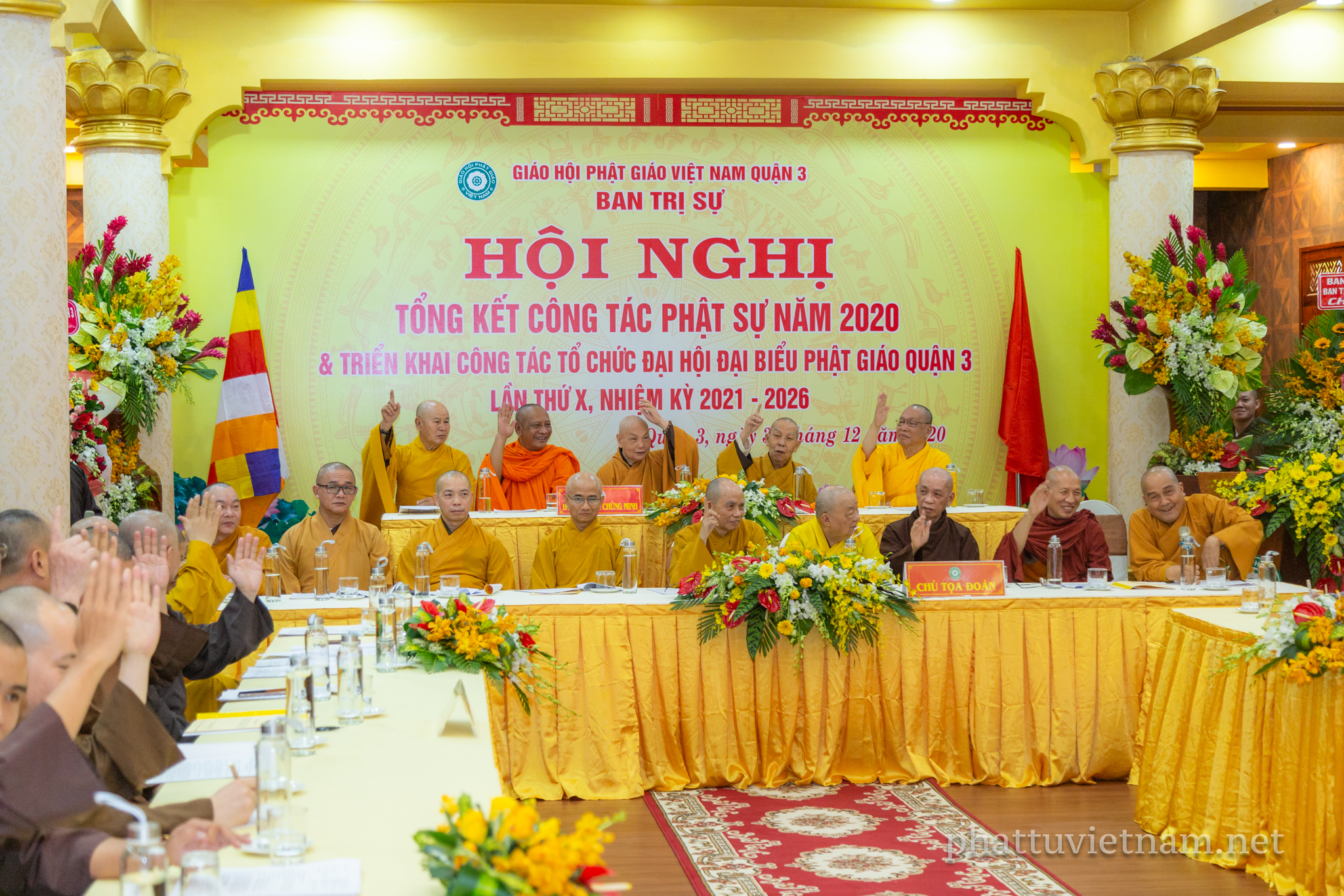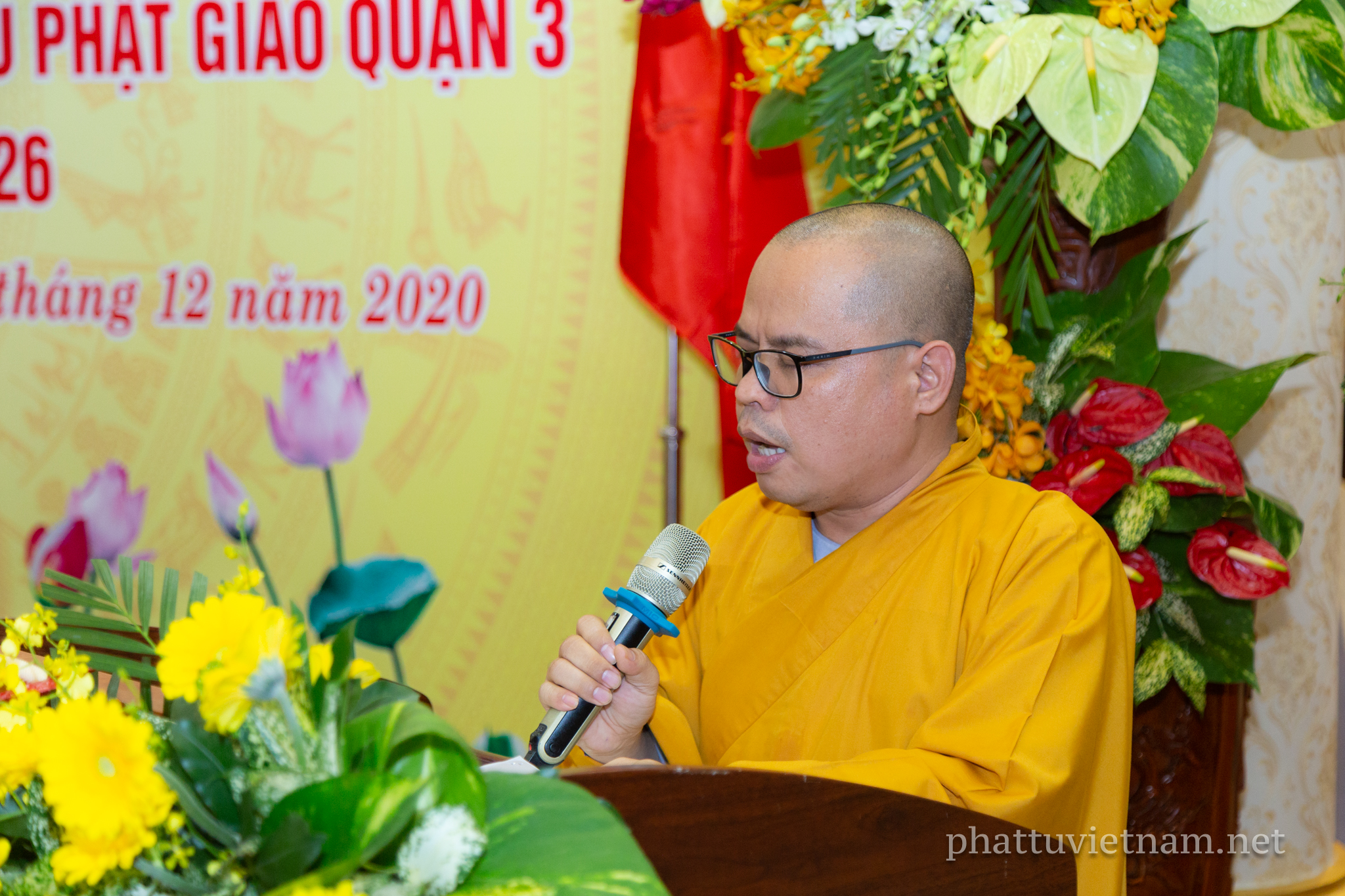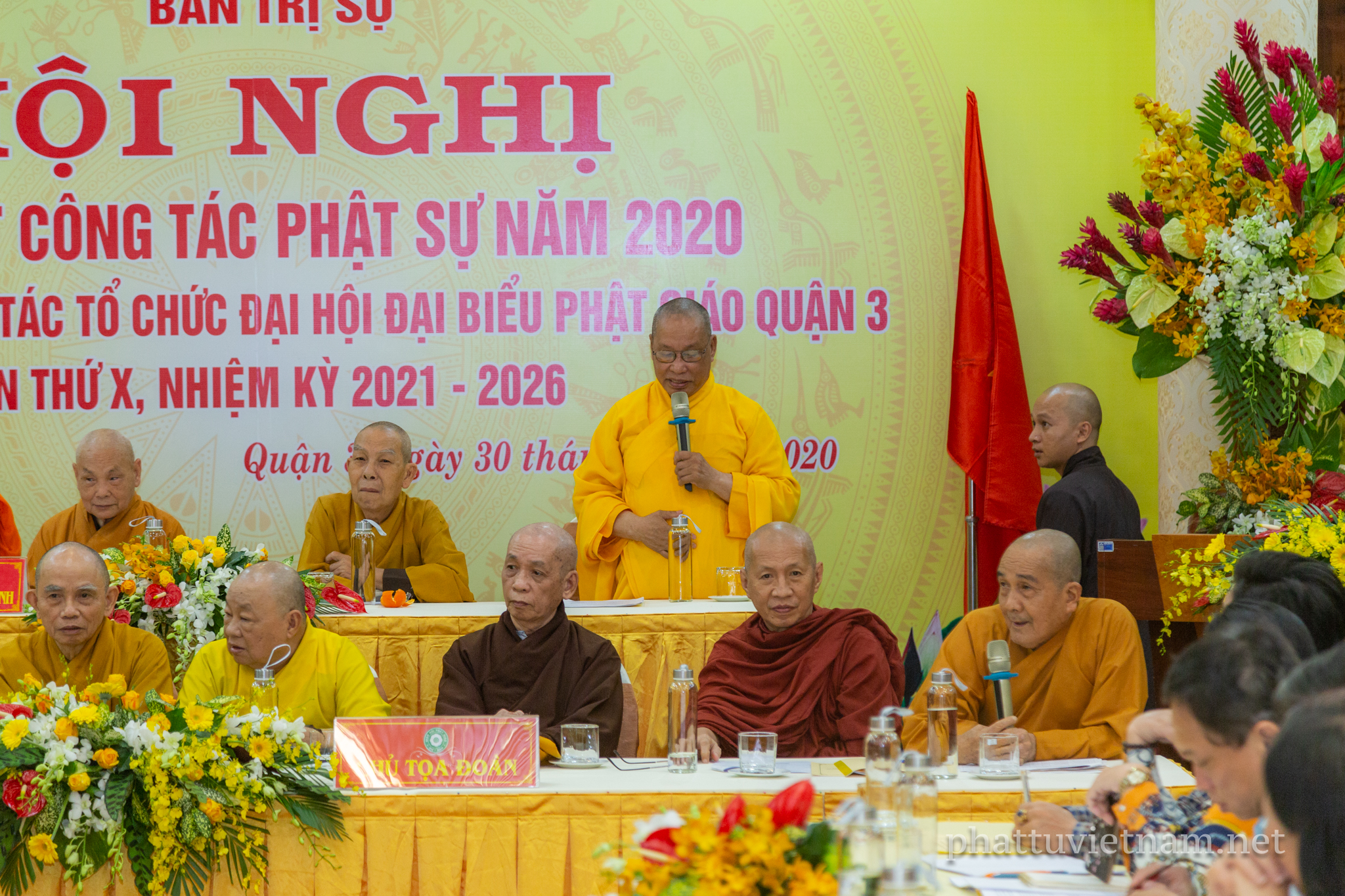 Báo cáo tổng kết Phật sự năm 2020, ĐĐ.Thích Thiện Châu – Phó ban kiêm Chánh Thư ký BTS Phật giáo Q.3 cho biết: Tại Quận 3, dưới sự chỉ đạo của Ban Thường trực Ban Trị sự GHPGVN Thành phố, Ban Trị sự Quận cùng Tăng Ni, Phật tử các chùa trong địa bàn đã thực hiện các công tác Phật sự trọng tâm như: Tổ chức Đại lễ Phật đản, tổ chức Khóa An cư Kiết hạ PL. 2564 – DL. 2020, Tưởng niệm 57 năm Bồ Tát Quảng Đức vị Pháp thiêu thân và chư Thánh Tử Đạo, chư vị tiền bối hữu công với Giáo hội và Đất nước,v.v…. Ban Trị sự Quận cũng chỉ đạo triển khai các mặt công tác Phật sự như: Xây dựng Kế hoạch tổ chức Đại hội Đại biểu Phật giáo Quận 3 nhiệm kỳ X (2021-2026), các hoạt động của các Ban trực thuộc Phật giáo Quận, các phong trào dân cử và đoàn thể tại địa phương.
