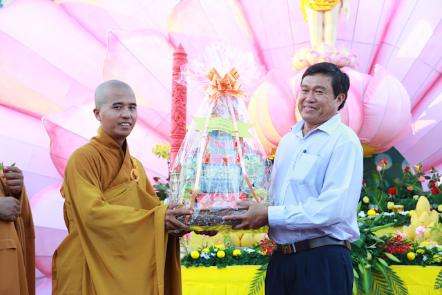 Tại buổi lễ, HT.Thích Thiện Tánh đã tuyên đọc thông điệp Phật Đản của Đức Pháp Chủ GHPGVN gởi đến đồng bào Phật tử Việt Nam trên toàn thế giới. Tiếp theo, TT.Thích Giác Huệ – trưởng BTS PG H. Cần Giờ đã tuyên đọc thông điệp Phật Đản của HĐTS GHPGVN. Để chúc mừng cho Phật giáo Huyện đã tổ chức Phật đản thành công, Ông. Lê Văn Thơm – Chủ tịch H.Cần Giờ đã phát biểu chúc mừng và cảm ơn Chư tôn đức giáo phẩm Trung ương và Tp.HCM đã thương mến PG Huyện mà quang lâm về tham dự, tạo không khí ấm áp cho bà con Phật tử nơi đây.