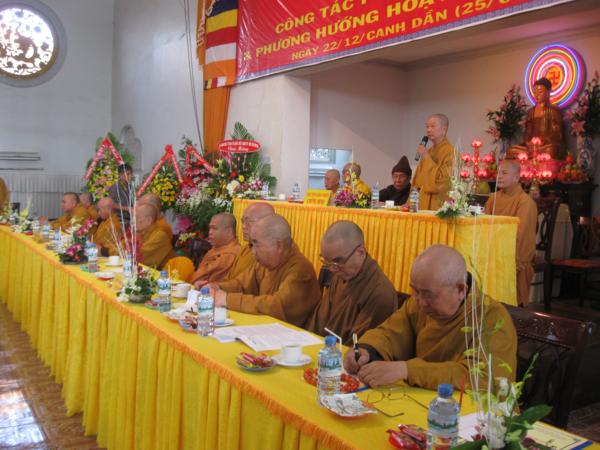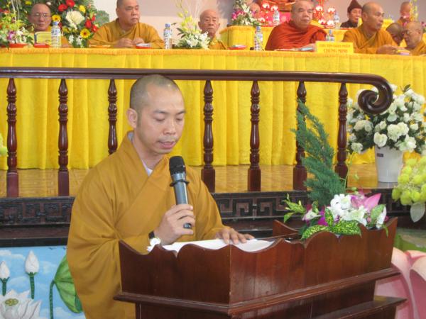 Kế đến là báo cáo tổng kết của Ban thư ký, trong bản báo cáo đã nêu rõ. Trong năm qua Phật giáo Thành phố đã đạt được những thành tựu rất quan trọng của các ban nghành như ; Tăng sự, tổ chức An cư kiết hạ, giáo dục Tăng – Ni, Hoằng pháp, Văn hóa, nghi lễ , hướng dẫn Phật tử, hoạt động của Phân ban GĐPT, Từ thiện xã hội…