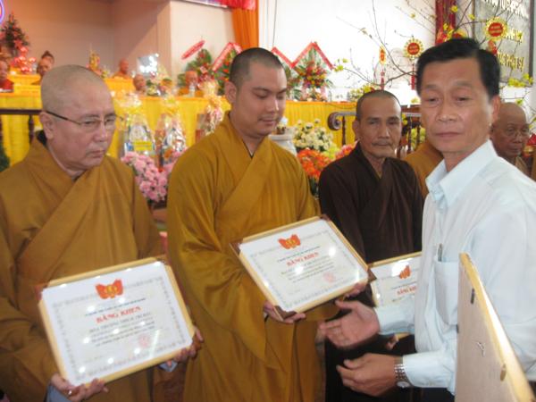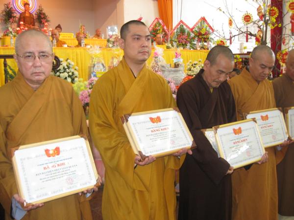 Trong dip này các tập thể và cá nhân đã nhận bằng tuyên dương công đức của HĐTS, Ban trị sự thành hội PG. TP và của Ủy ban TƯMTTQ TP.HCM.