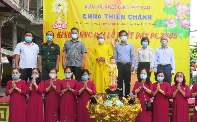 Tại chùa Thiên Chánh (P.Phú Trung, Q.Tân Phú), ông Phạm Hưng Quốc Bảo – Phó Bí thư Thường trực Quận uỷ, Phó Chủ tịch Thường trực HĐND quận, cùng đại diện Quận uỷ, UBND, UBMTTQVN Q.Tân Phú, phường Phú Trung đã đến thăm và chúc mừng Phật đản đến Đại đức Thích Quảng Tiến – Phó Trưởng ban Thường trực BTS GHPGVN Q.Tân Phú.