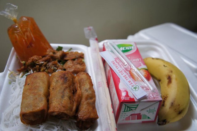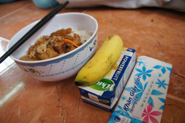 16h00: Mọi người lần lượt lên xe mang theo 300 phần quà gồm bún gạo, chuối, sữa, đến bệnh viện An Bình, trao tận tay cho các bệnh nhân.