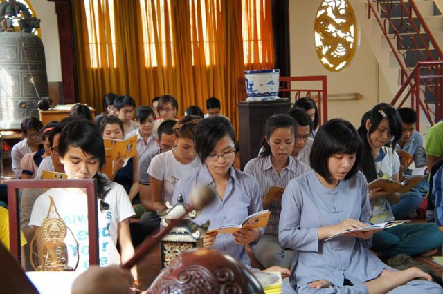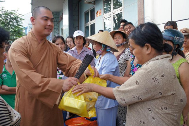 15h00: Đại chúng trì tụng kinh Từ Tâm – Phúc Đức, hồi hướng phúc lành cho các thí chủ phát tâm hùn phước, cúng dường tịnh tại cho hoạt động “Phát cơm từ thiện”, lợi ích kẻ còn người mất. Nguyện cho bệnh nhân thọ nhận thức ăn này được mau chóng lành bệnh (thức ăn của chùa là thức ăn của Phật).