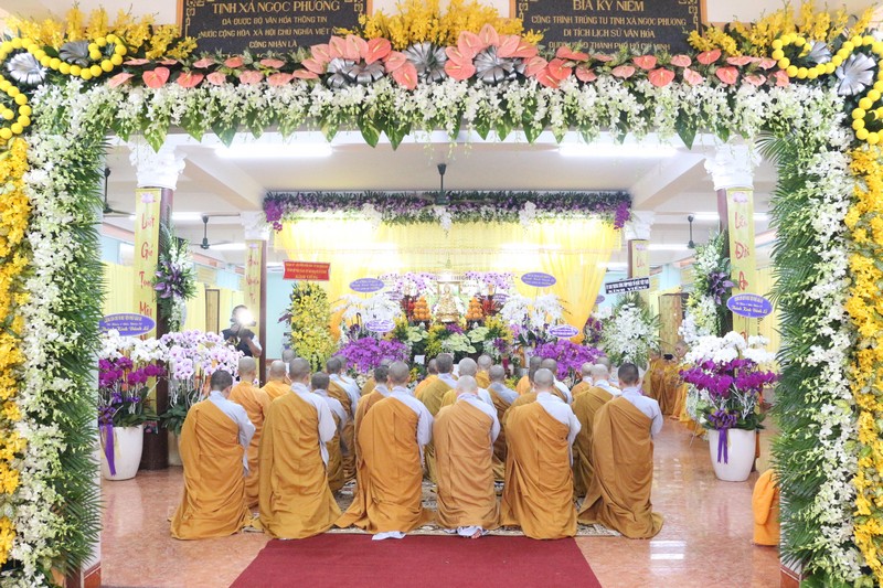 Chư Tôn đức Ban Thường trực GHPGVN tỉnh Vĩnh Long: TT. Thích Phước Hùng – Phó BTS, Trưởng Ban Nghi lễ GHPGVN tỉnh Vĩnh Long; TT. Thích Giác Hiển – Phó BTS kiêm Trưởng Ban Từ thiện GHPGVN tỉnh Vĩnh Long cùng chư tôn đức Tăng Ni trong tỉnh Vĩnh Long.