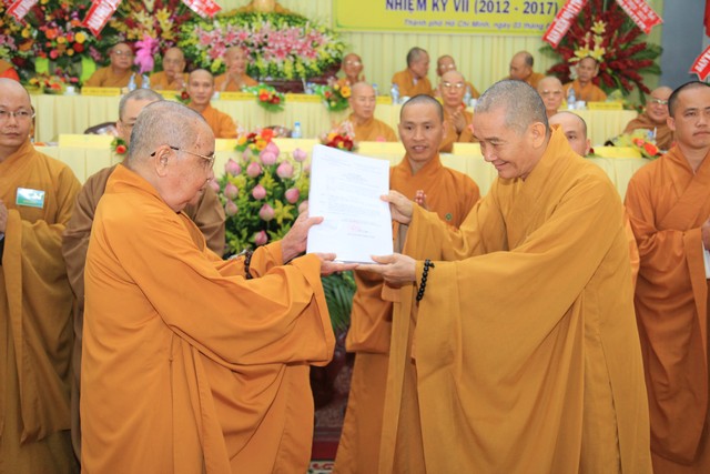 TT Thích Phước Nghiêm tuyên đọc danh sách chuẩn y nhân sự Ban HDPT TW GHPGVN nhiệm kỳ VII (2012-2017), gồm 92 thành viên do HT.Thích Thiện Duyên – Phó chủ tịch HĐTS GHPGVN làm Trưởng ban.
