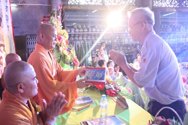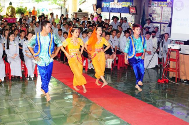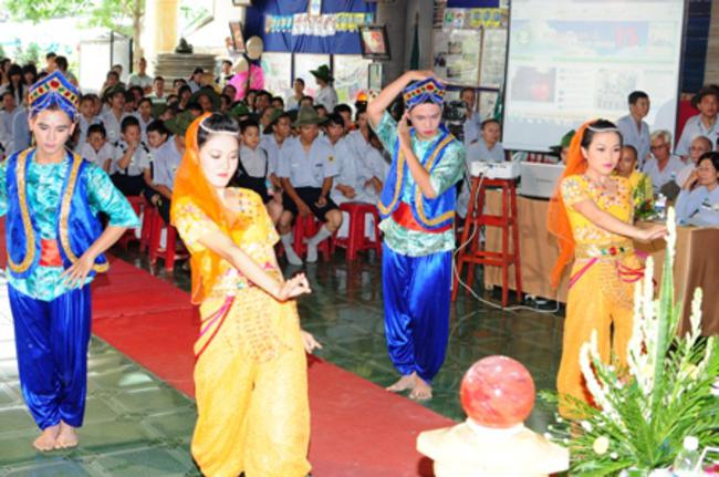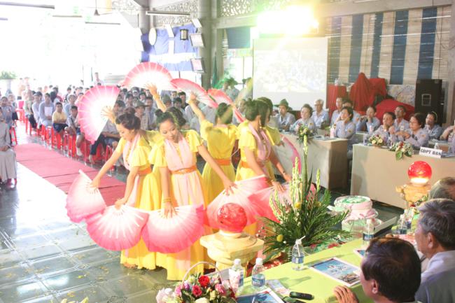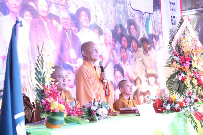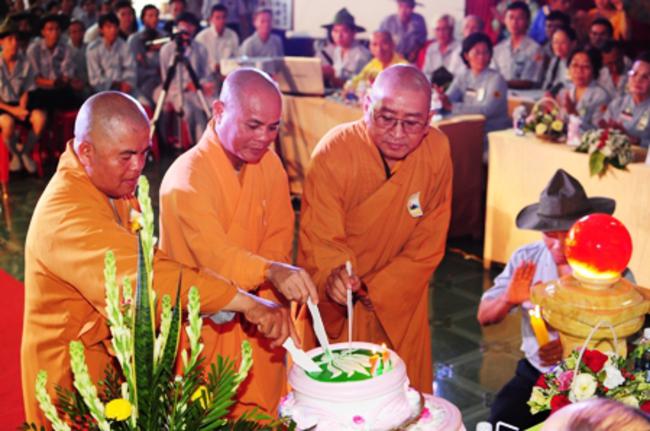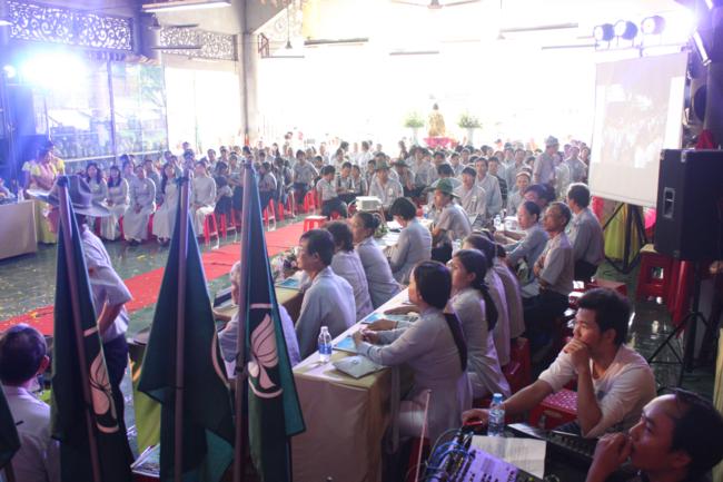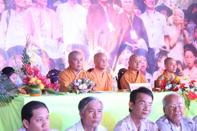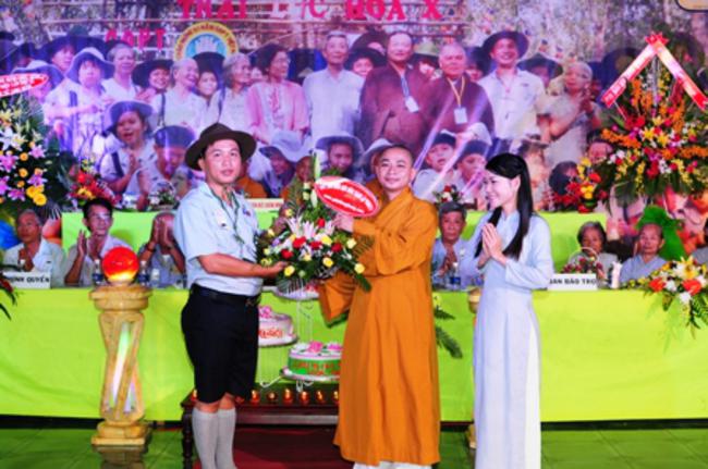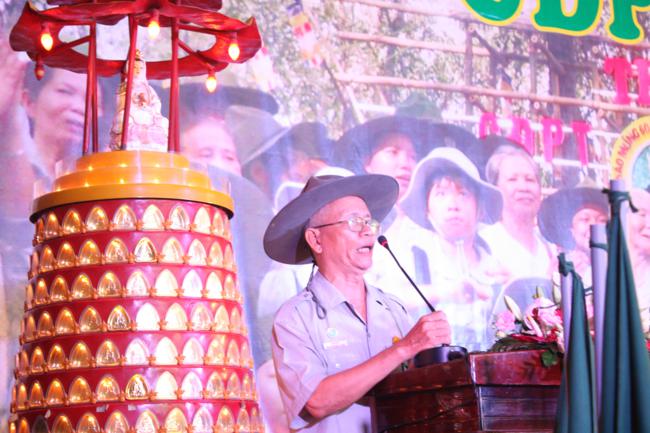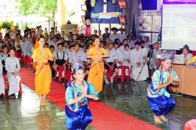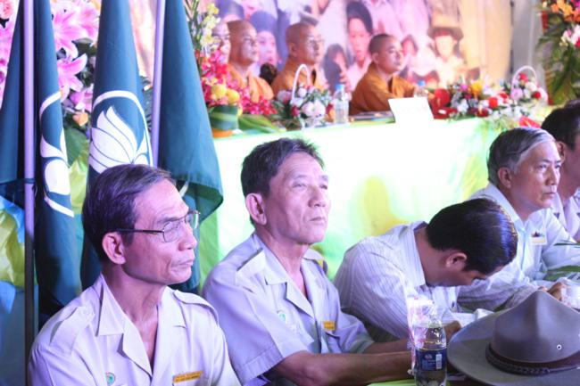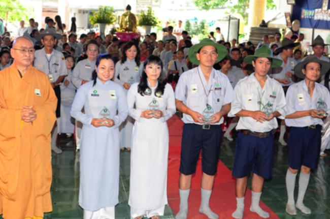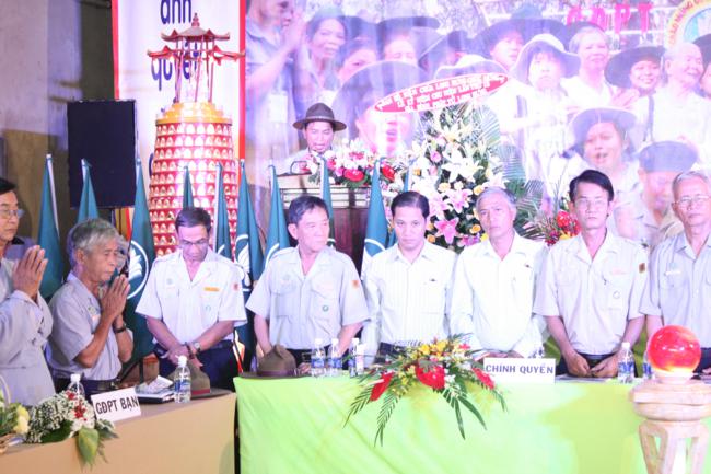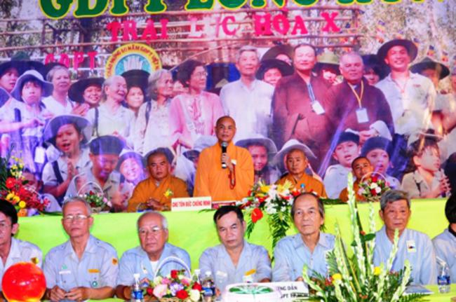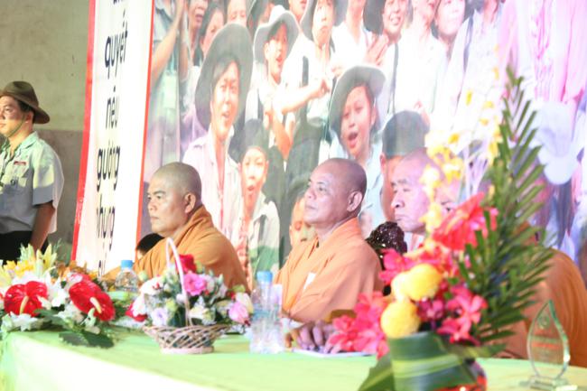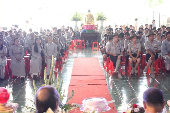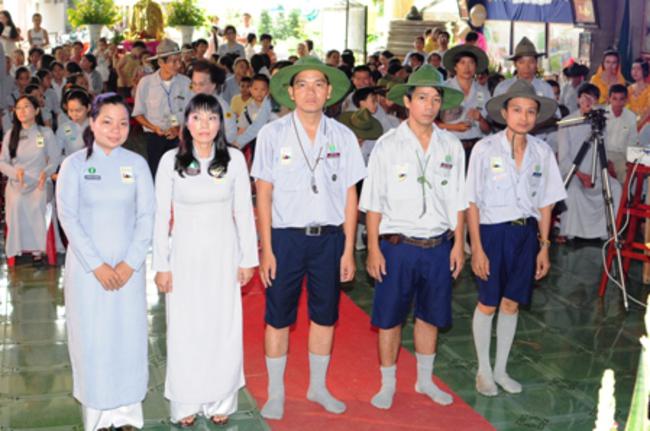 Toàn thể Ban Huynh trưởng và đoàn sinh GĐPT Long Hưng trong đồng phục lam hiền hòa, trang nghiêm cung nghinh Thượng tọa Thích Tấn Đạt – Ủy viên Thường trực HĐTS – Phó ban kiêm Chánh Thư Ký Ban Hoằng Pháp Trung Ương – Phó văn phòng II TW – Thượng tọa Thích Thanh Sơn Phó Ban Đại Diện Phật Giáo Quận Tân Bình, Thượng tọa Thích Thiện Hòa – Ủy viên Kinh tế tài chánh THPG/TPHCM, Phó Ban Thường Trực Ban Đại Diện Phật Giáo Quận Tân Phú – Trụ trì kiêm Cố vấn Giáo Hạnh GĐPT Long Hưng, Đại đức Thích Quảng Tiến – Chánh Thư Ký Ban Đại Diện Phật Giáo Quận Tân Phú – Giáo Thọ Sư GĐPT Long Hưng, Đại đức Thích Thiện Trực Trú Xứ Chùa Long Hưng quan lâm và chứng minh buổi lễ chính thức.