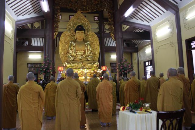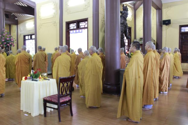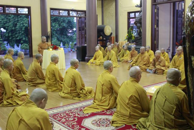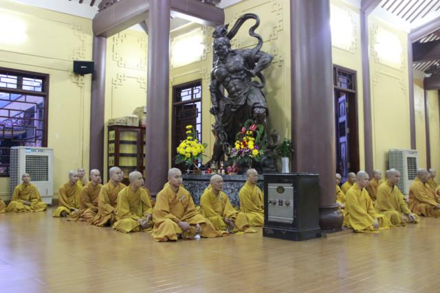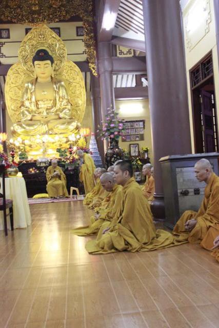 Sau nghi thức niệm hương bạch Phật, ĐĐ. Thích Lệ Quang – Thư ký hạ trường đã thông kiểm số chúng; sau đó ĐĐ. Thích Minh Nhựt – Tri sự chùa Phổ Quang đã trùng tuyên giới bổn Tỳ kheo, ĐĐ. Thích Thiện An – Thủ quỷ hạ trường trùng tuyên giới bổn Bồ tát trước đại chúng. Đặc biệt quý Nam nữ Phật tử cũng được tham dự buổi bố tát, được Hòa thượng nhắc lại về Ngũ giới và bồ tát giới tại gia giúp Phật tử khắc ghi lời Phật dạy mà hành trì trên con đường tu tập .