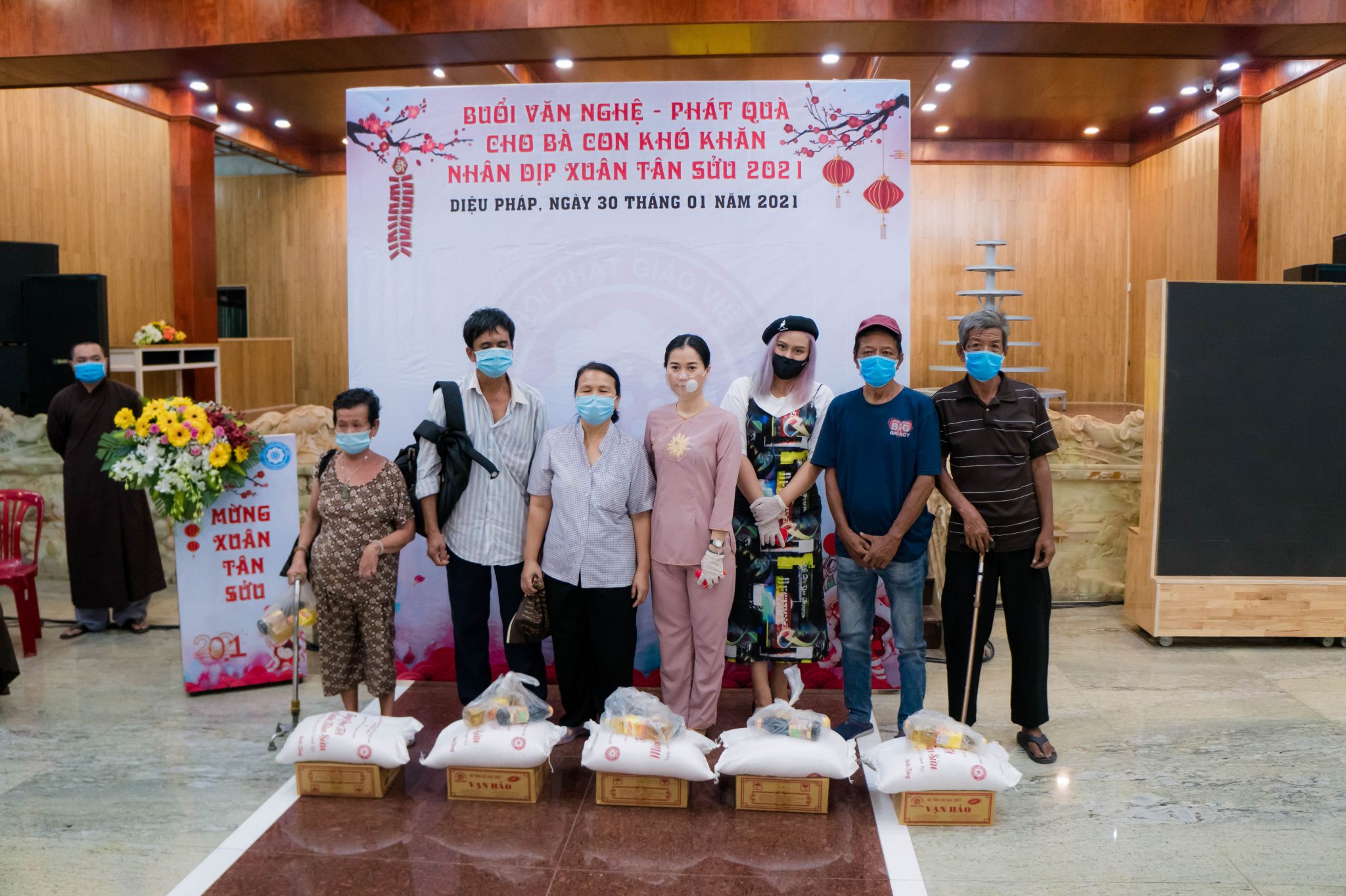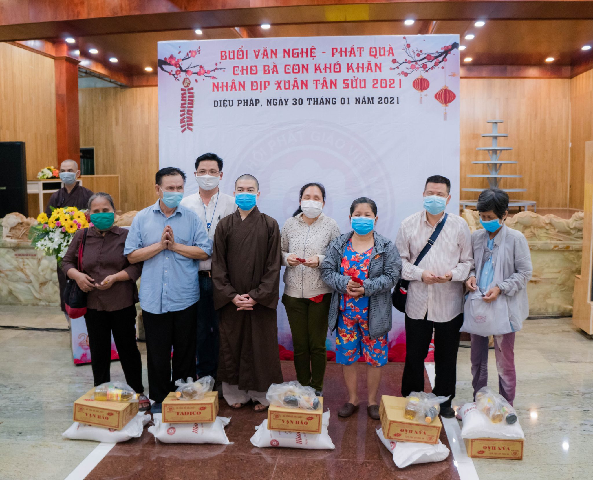 Chương trình phát quà có sự hiện diện của chư Tăng bổn tự cùng các Phật tử Đạo tràng, phụng sự viên. Ngoài ra, còn có sự tham gia của nghệ sĩ Lâm Vỹ Dạ, ca sĩ Châu Đăng Khoa, ca sĩ Thu Thủy.