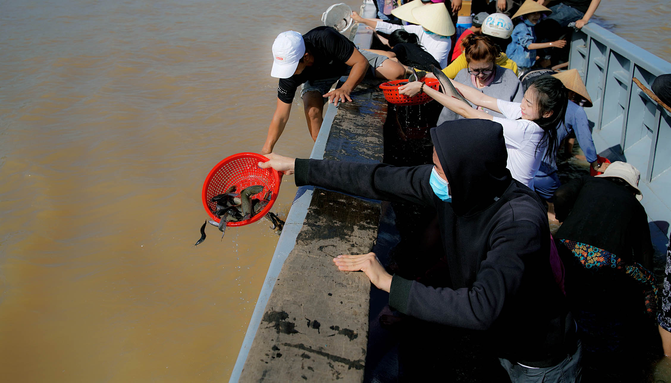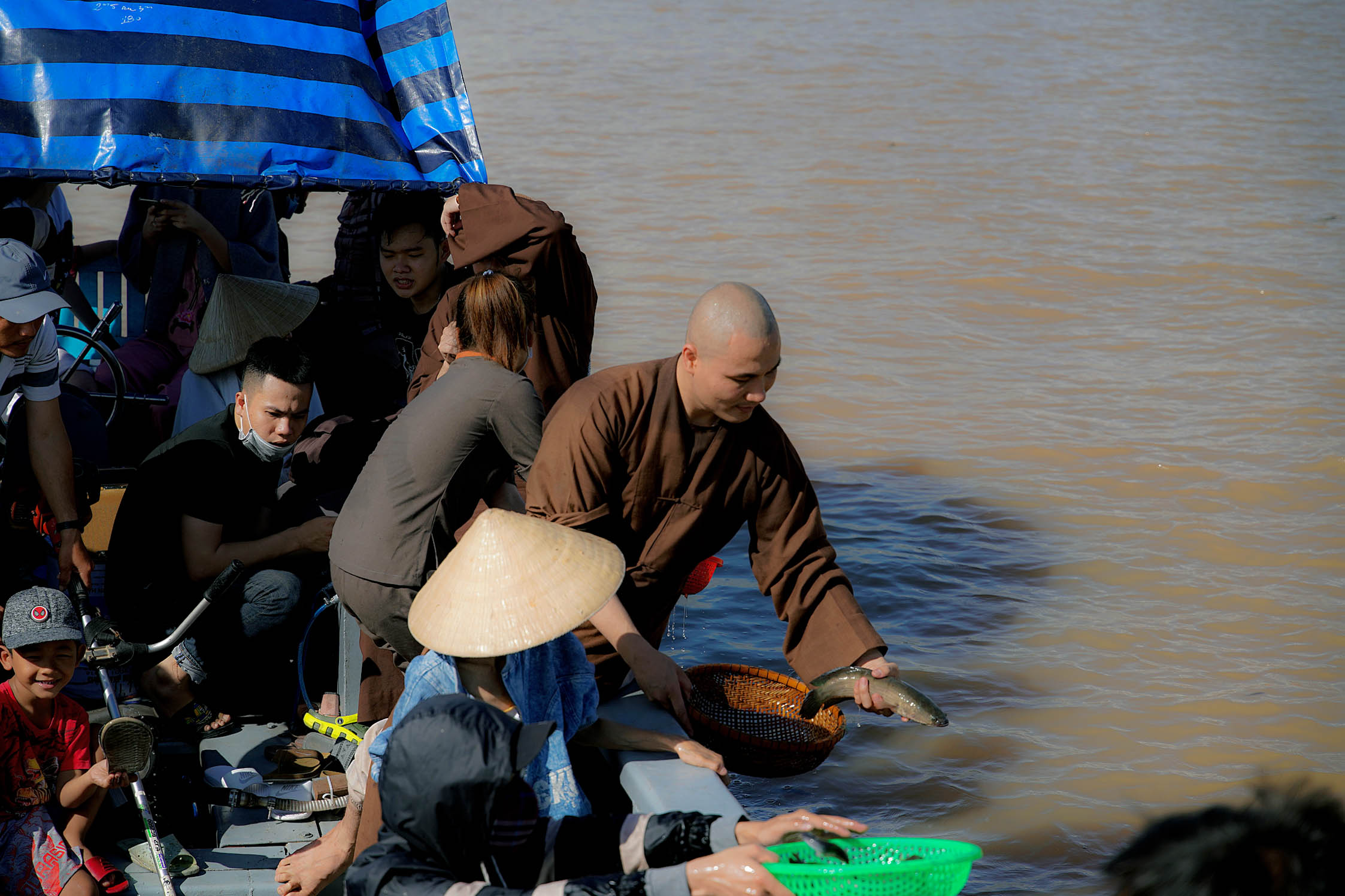 Gần hai tấn cá đã chư Tăng và Phật tử trả về môi trường sống tự nhiên không chỉ giúp tái tạo nguồn lời thủy sản mà còn cân bằng hệ sinh thái tự nhiên.