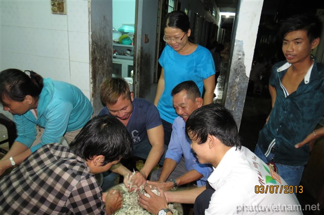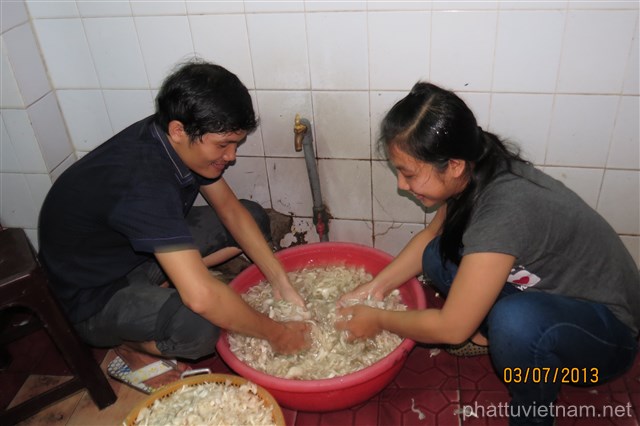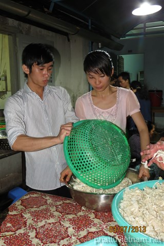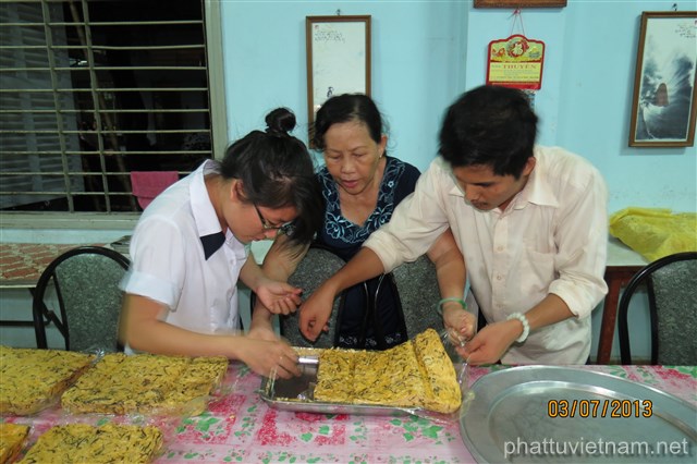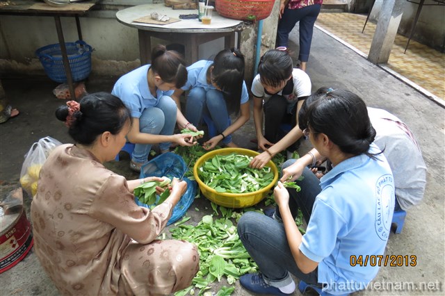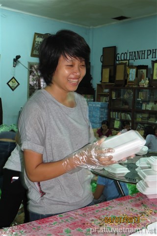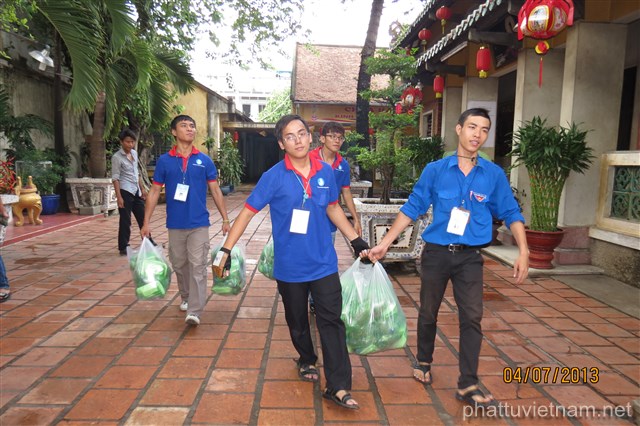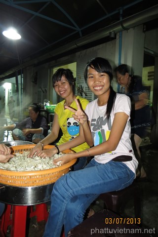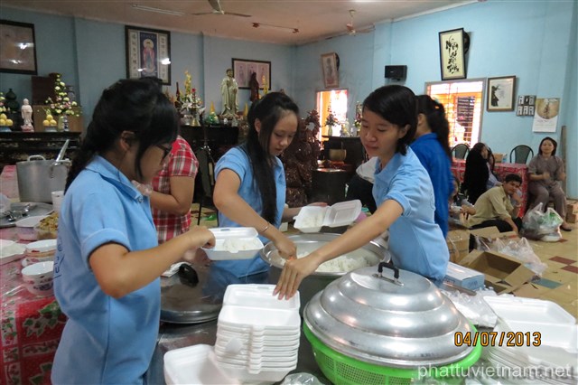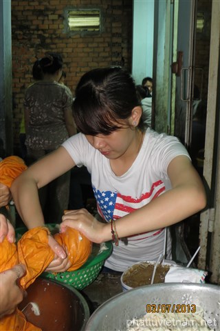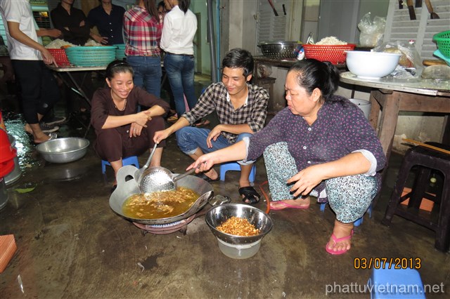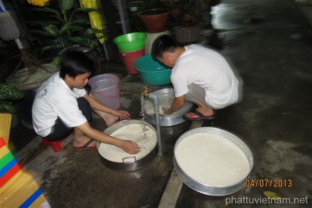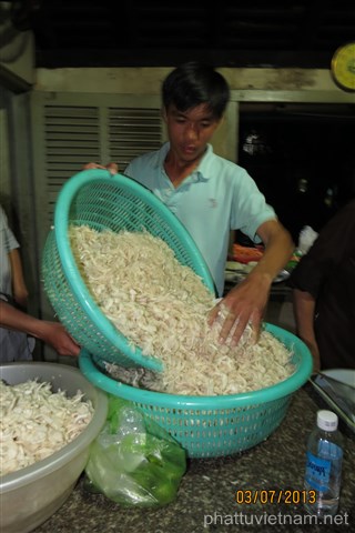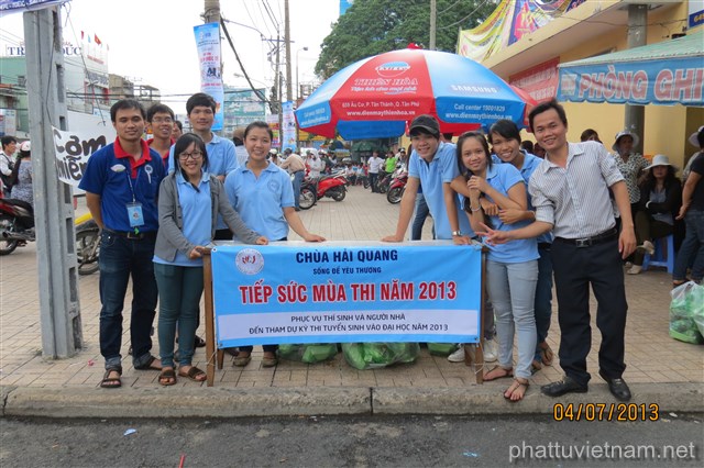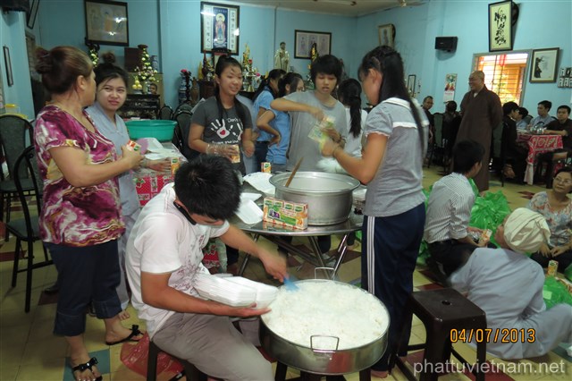 Để kịp chuẩn bị số lượng thức ăn lớn đạt tiêu chuẩn an toàn thực phẩm, mang lại sự an tâm và sức khỏe tốt cho các thí sinh trong mùa thi năm nay. Các Phật tử chùa, thành viên CLB Phật tử trẻ Hải Quang cùng với các bạn tình nguyện viên của trường ĐH Tài Nguyên và Môi Trường, đã làm việc suốt từ 15h00 chiều ngày 3 tháng 7 cho đến 9h00 sáng ngày 4 tháng 7 năm 2013.