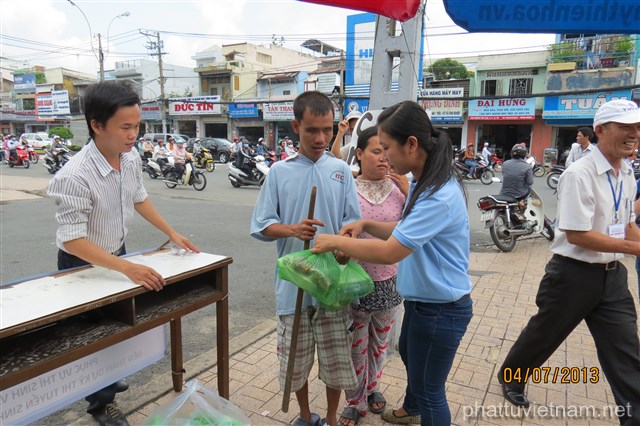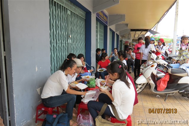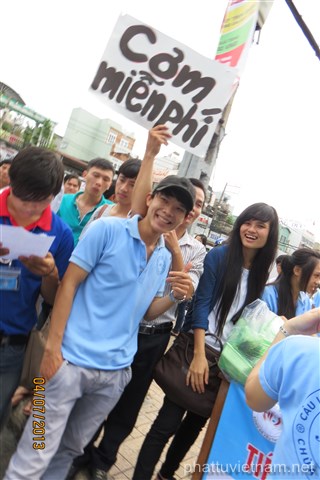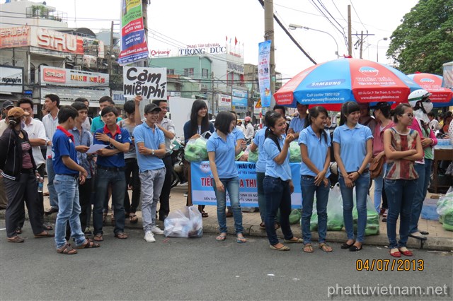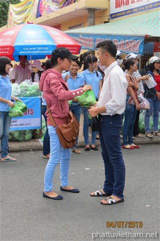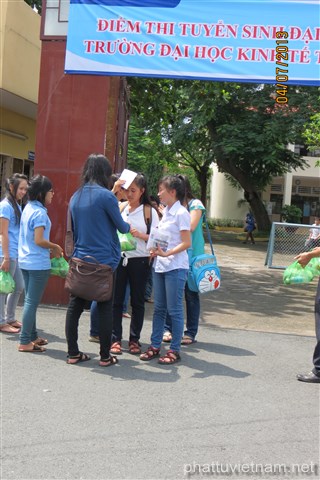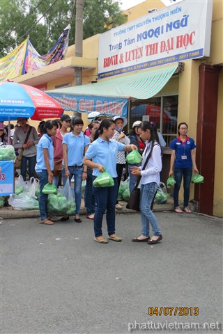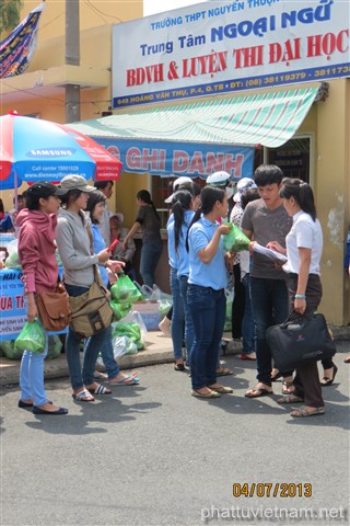 Theo đó, đúng 9h sáng cùng ngày, Chùa đã phân chia làm hai đoàn đến hai điểm thi theo đúng kế hoạch đã đề ra để phát cơm cho thí sinh. Buổi phát cơm diễn ra trong không khí vui vẻ, hòa hợp giữa các bên làm với nhau, những phần cơm được trao đến tận tay cho từng thí sinh, kèm theo lời chúc thi tốt, thành công trong các môn thi sau. Bên cạnh đó, việc phát cơm không chỉ dành riêng cho các bạn thí sinh, mà các thành viên trong CLB còn hỗ trợ thêm cho những người nghèo, người khuyết tật những phần cơm trưa thân tình, nhằm mang tình yêu thương đến cho tất cả mọi người.