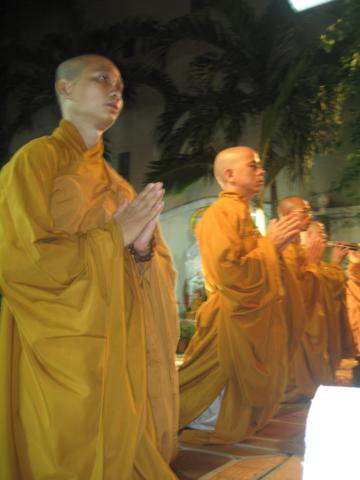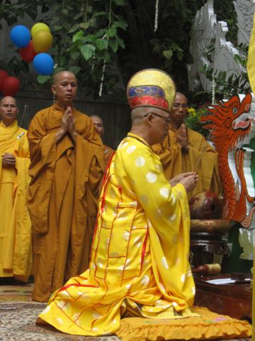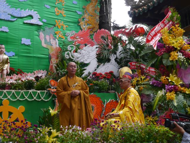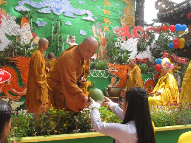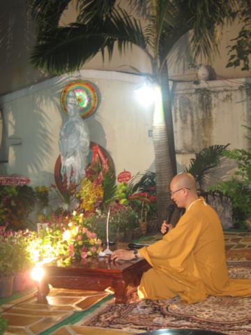 Trước đó, vào lúc 4h sáng, chư Tăng chùa Hải Quang đã làm lễ khánh đản đức Từ phụ, chư Tăng đồng tâm cầu nguyện, chúc đạo Phật ngày càng tỏ rạng, mưa thuận gió hoà, pháp luân thường chuyển, thế giới hoà bình, chúng sanh an lạc.