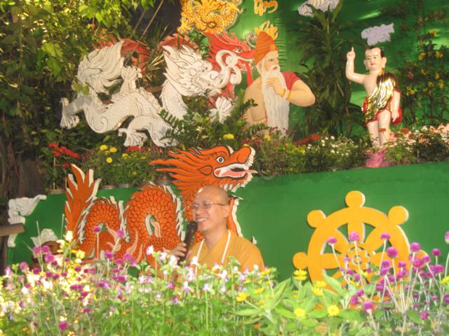 Đại lễ Phật đản chùa Hải Quang năm nay có nhiều chương trình hay và ý nghĩa. Thông qua ý nghĩa đản sanh, Thượng toạ Thích Đạt Đức đã chia sẻ niềm vui ngày hội mừng Đức Phật giáng sanh, ước mong mọi người yêu thương muôn loài, sớm quay về bờ giác, giúp nhau vượt qua nguy khó, cùng nhau sống hiền lương thái bình, hạnh phúc. “ Nguyện cầu Đức Phật xuất hiện tại thế gian, xin mọi loài hãy lắng nghe diệu pháp từ bi, trí tuệ, giác ngộ mà khởi tâm thương yêu đến bản thân mình và thế giới khổ đau, nguyện cho muôn loài được sống trong hào quang sáng soi của đức Phật, được an lành, hạnh phúc”, Thượng toạ khấn nguyện.