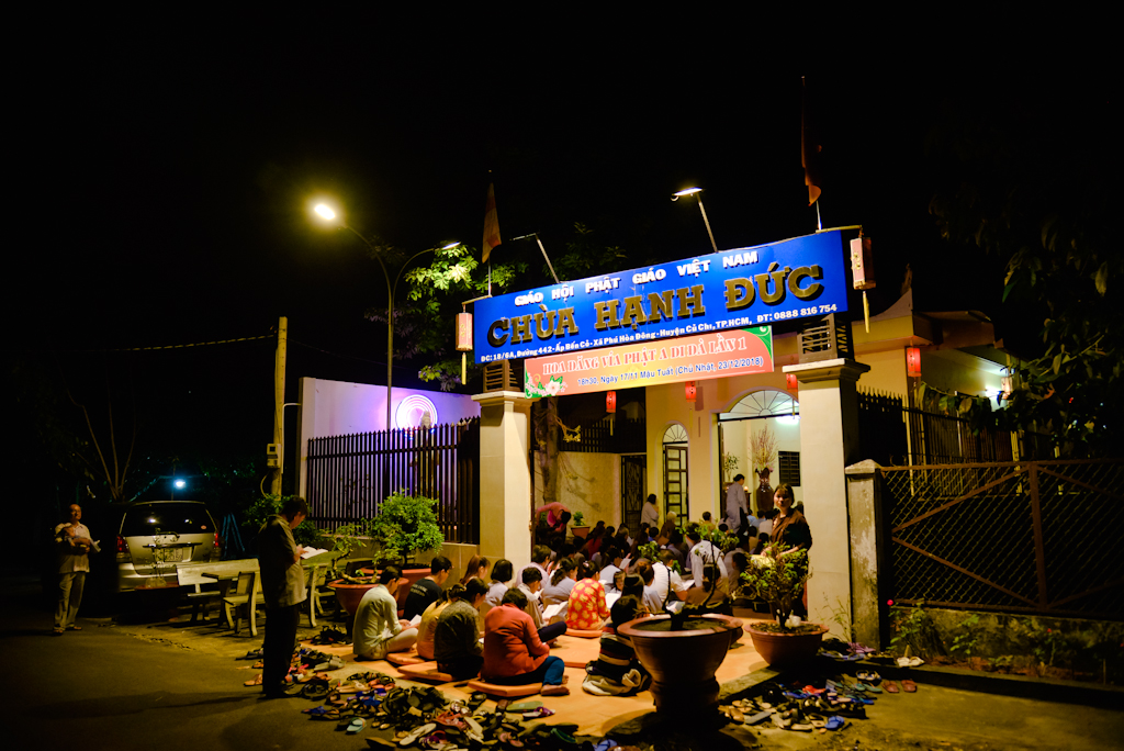 Tối ngày 23/12 (17/11 Â.L), Đạo tràng Phật tử chùa Hạnh Đức (số 18/6A Đường 442, Xã Phú Hòa Đông, Huyện Củ Chi) đã trang nghiêm cử hành Lễ vía Đức Phật A Di Đà, thắp Hoa đăng, dâng đèn cúng Phật nguyện cầu quốc thái dân an, chúng sanh an lạc.