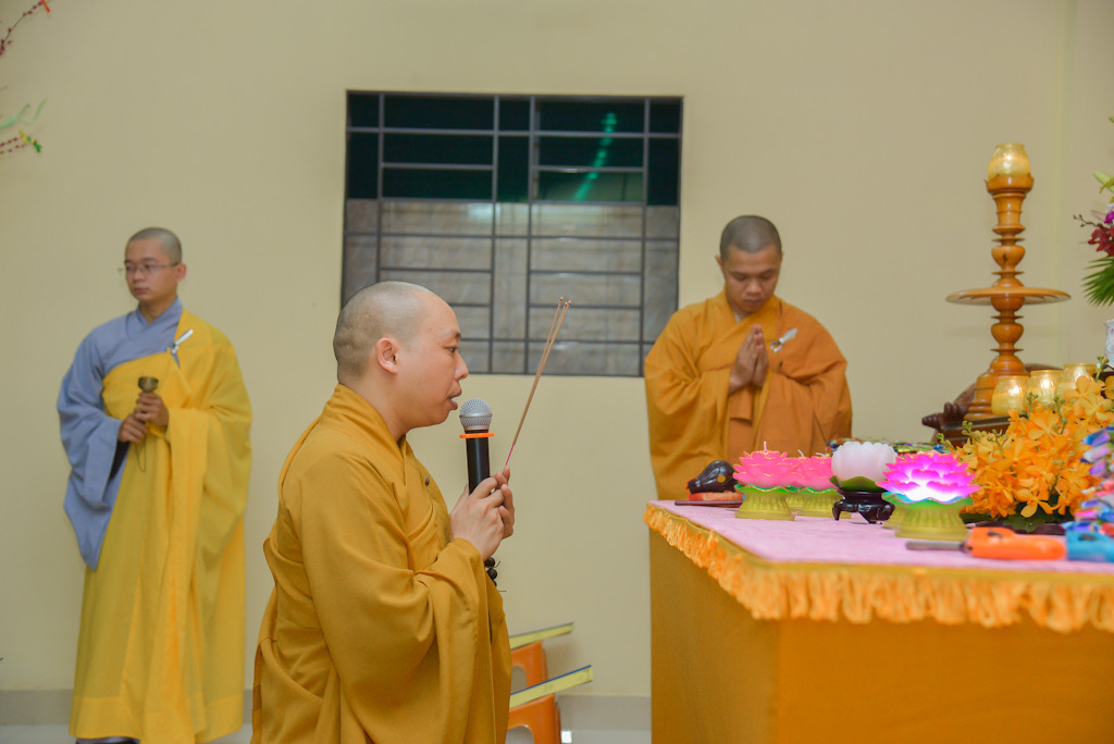 Đại đức Thích Hạnh Hiếu (trụ trì chùa Hạnh Đức) niêm hương lễ tổ, bạch Phật nhân lễ vía Đức Phật A Di Đà