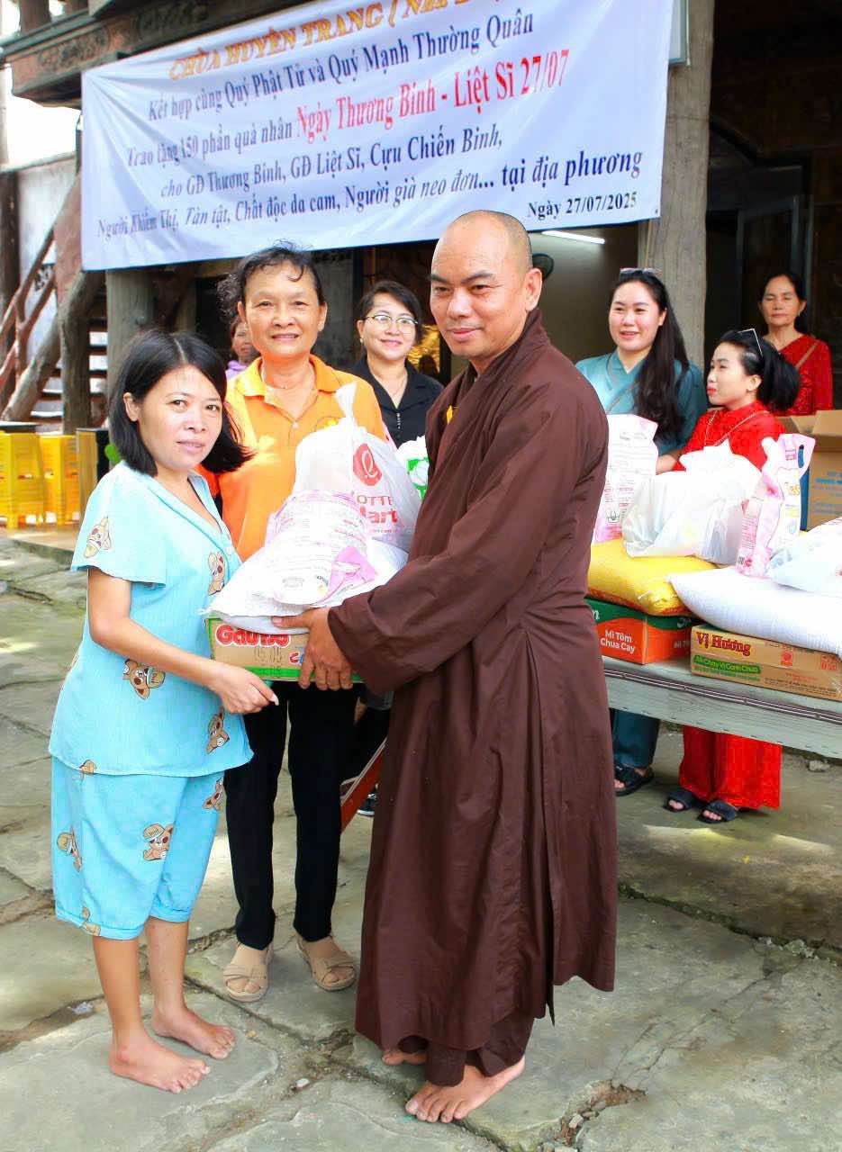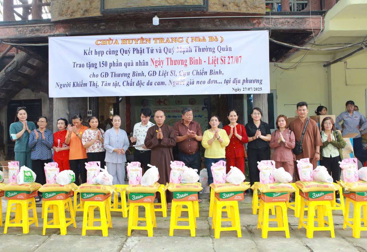 Sáng 27-7-2025, nhân ngày Thương binh – Liệt sỹ 27-7 chùa Huyền Trang, xã Nhà Bè, TP.HCM trao tặng 150 phần quà đến các thương binh, cựu chiến binh, nạn nhân chất độc màu da cam/dioxin, người mù trên địa bàn xã.