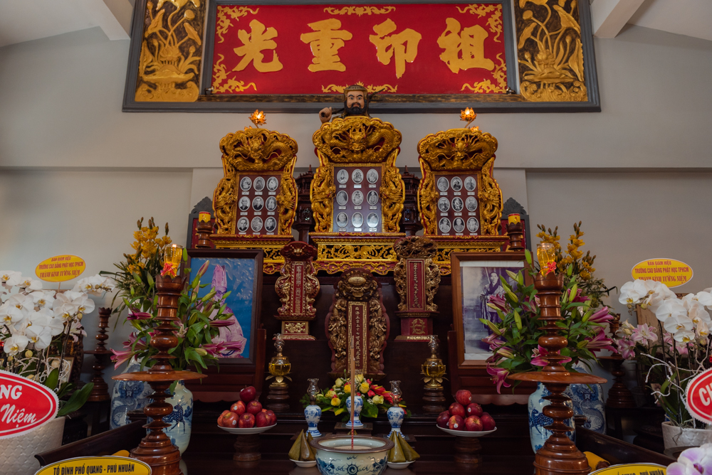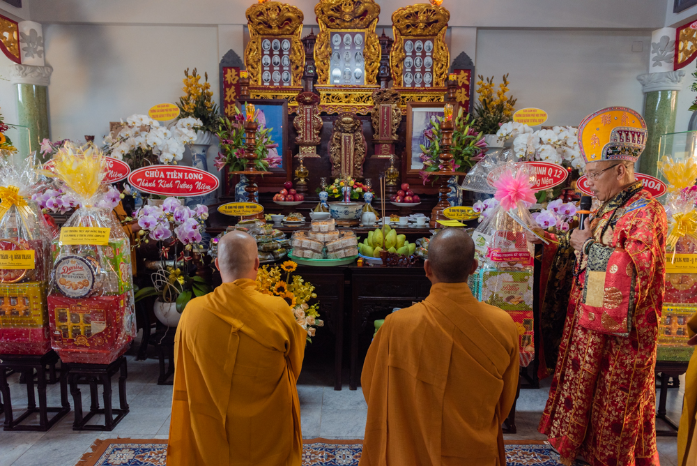 Tại Tổ đường chùa Huỳnh Kim, Ban Kinh sư, môn đồ pháp quyến cử hành nghi thức cung tiến Giác linh Hòa thượng Thích Hồng Phước, cùng chư vị lịch đại Tổ sư.
