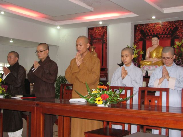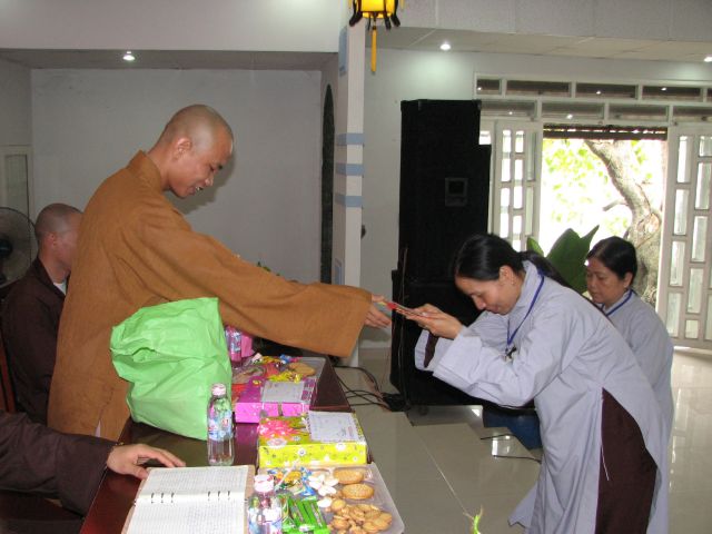 Sau phần ăn cơm chánh niệm và nghỉ trưa vào 2 giờ chiều buổi lễ tổng kết và tất niên cuối năm đã được cử hành.