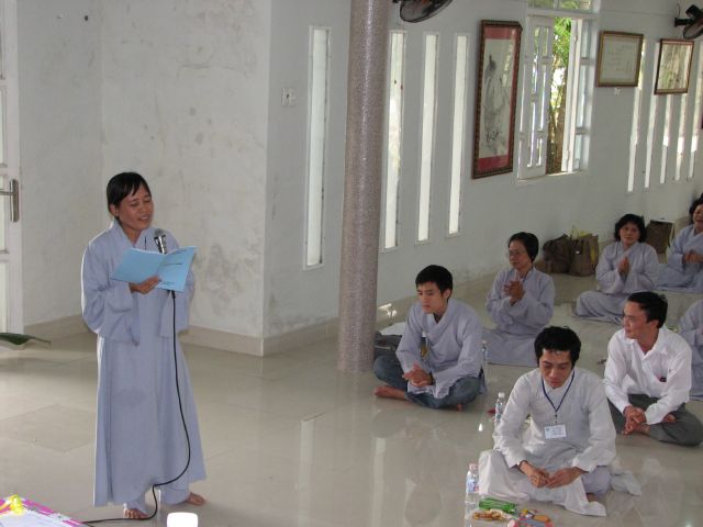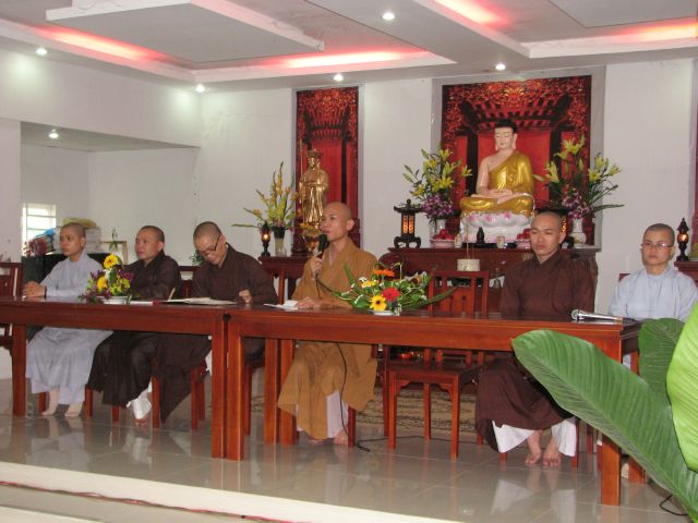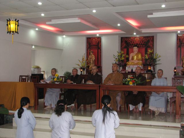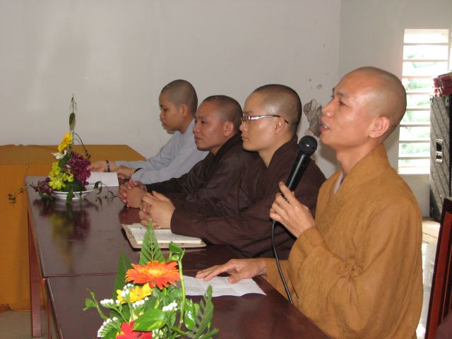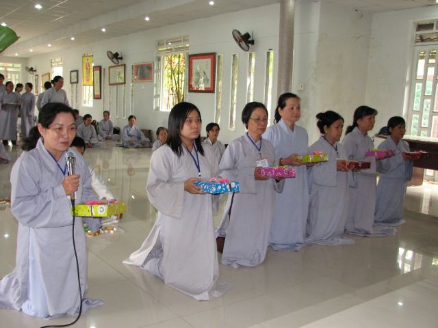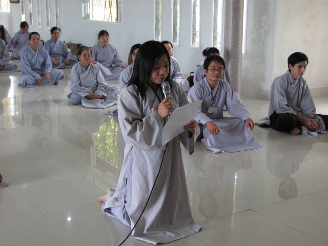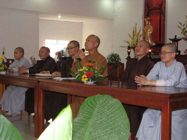 Sau phần nghi thức niệm Phật cầu gia hộ Thầy Nguyên An đã có lời tuyên bố lý do và giới thiệu thành phần tham dự. Kế đến Phật tử Ngọc Hòa và Ngọc Nhẫn đã cung đối trước Chư Tôn Đức và hội chúng báo cáo tổng kết và nói lên cảm tưởng của mình trong một năm tu học.