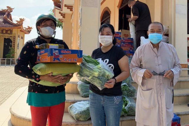 Để đảm bảo an toàn phòng chống dịch COVID-19, UB.MTTQVN phường Tăng Nhơn Phú B phối hợp Chùa Phong Linh trao quà thành 2 buổi sáng và chiều nhằm tránh tập trung đông người; đồng thời, các trường hợp đến nhận quà phải thực hiện nghiêm nguyên tắc “5K”: đeo khẩu trang, sát khuẩn tay và kiểm tra thân nhiệt.