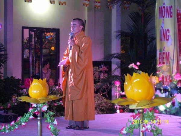 Trước khi đêm văn nghệ diễn ra TT. Thích Hồng Lý trụ trì chùa Long Huê, mở kêu gọi đồng bào Phật tử gần xa phải biết quay về nương tựa Phật pháp, ngài nhấn mạnh chỉ có Phật pháp mới là liều thuốc hữu hiệu nhất để diệt trừ lòng si mê, tham lam, sân hận, đưa con người thoát khỏi khổ đau, nhân đây ngài tuyên bố khai mạc, chúc mừng Phật tử gần xa tận hưởng một mùa khánh đản thật tràn ngập niềm vui và hỷ lạc.