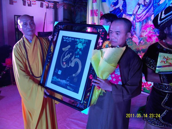Sau buổi văn nghệ TT đã trao tặng quà lưu niệm, và mong mỏi đoàn sẽ có nhiều tiết mục Phật pháp hơn nữa, để cống hiến cho đồng bào Phật tử gần xa, cũng như mang giáo lý của đức Phật được lan tỏa khắp muôn nơi.