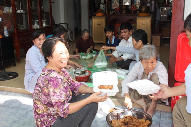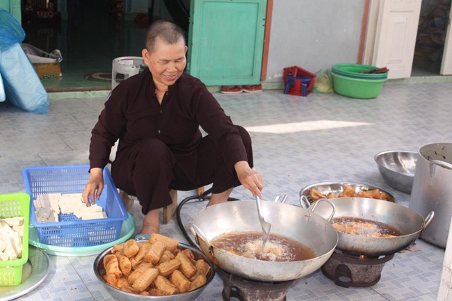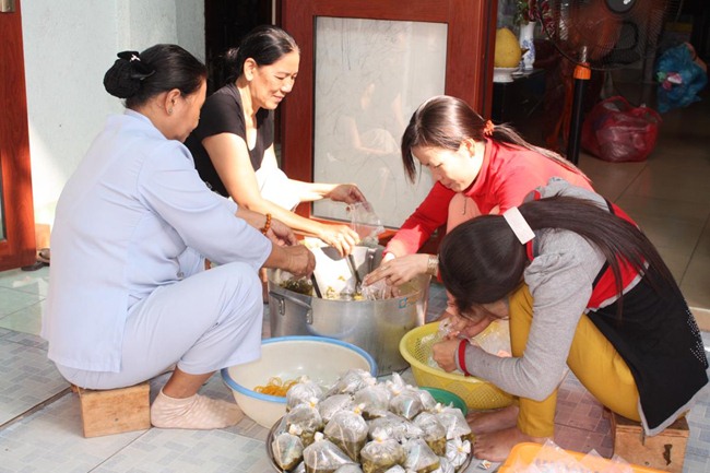 Việc tổ chức nấu cơm miễn phí tại chùa bắt đầu từ đầu năm 2011, xuất phát từ những nỗi niềm của thầy khi thấy những người lao động nghèo, những sinh viên xa nhà cần có những bữa cơm thanh tịnh. Tấm lòng thiện nguyện đó của thầy được nhiều Phật tử hết lòng ủng hộ. Những ngày đầu đương nhiên là khó khăn và vất vả, từ việc mua nguyên liệu, nồi, chảo, thau, chậu,… nhưng cũng nhờ sự gia hộ của Phật tử cùng lòng quyết tâm, thầy đã cố gắng chu toàn trong sự giúp đỡ của bà con gần xa: người có gạo giúp gạo, có dầu giúp dầu, có rau cải giúp rau cải, có công giúp công…Từ đó đến nay, cơm chay từ thiện này cung cấp đều đặn bữa ăn trưa cho mọi người trong các ngày 1và 15 (âm lịch) hằng tháng. Mỗi ngày có từ 450 – 500 suất cơm chay miễn phí được trao đến tận tay những người cần nó. Đa phần những người đến nhận cơm chay tại chùa là những lao động nghèo từ các tỉnh ở miền Trung, miền Bắc vào TP mưu sinh bằng đủ nghề: thợ hồ, bán vé số dạo, lượm ve chai, chạy xe ôm và cả học sinh, sinh viên. Gần chùa có rất nhiều trường Đại học, Cao đẳng… Do vậy, việc tổ chức nấu cơm chay của chùa còn góp phần giúp những sinh viên nghèo xa nhà có điều kiện vượt qua khó khăn để học tập tốt.