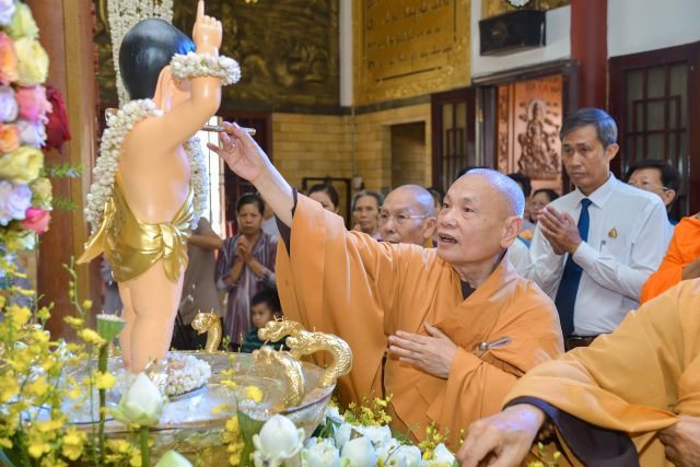 Tiếp theo, Chư tăng Nam tông cử hành nghi lễ cúng dường Phật Đản Sanh, Chư tôn đức cùng quan khách dâng hương lễ Phật, tụng kinh cầu nguyện. Sau cùng là quan lâm chánh điện làm lễ Tắm Phật, cuối cùng là thả bong bóng và chim bồ câu cầu nguyện hòa bình.