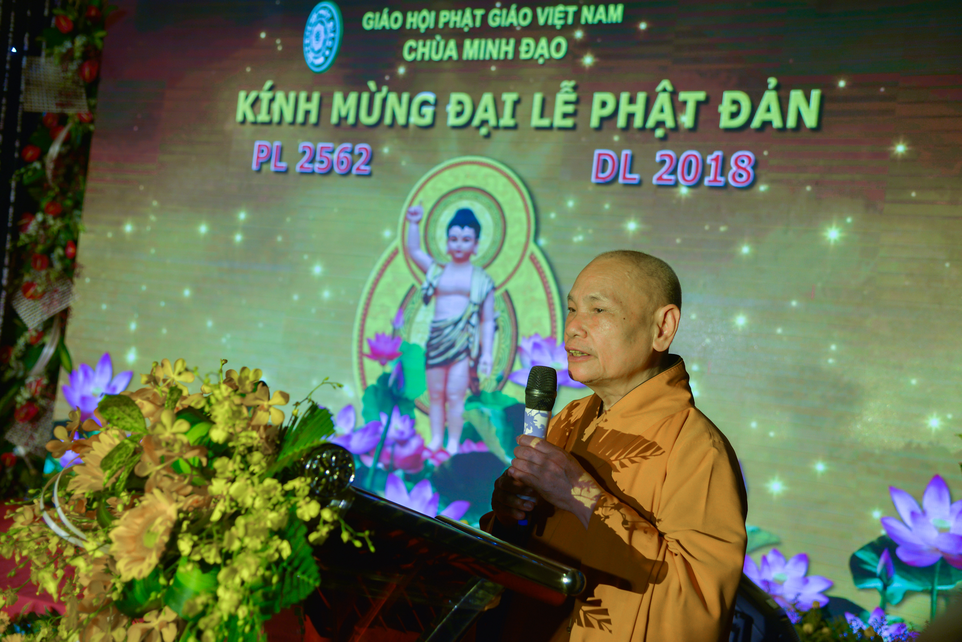 Tại buổi lễ, Thay mặt Ban tổ chức HT.Thích Thiện Đức, ủy viên TT HĐTS đọc thông điệp Phật Đản của Đức Pháp Chủ GHPGVN. Đại chúng thành kính lắng động thân tâm lắng nghe 3 hồi chuông trống bát nhã cung rước Phật Đản sanh.