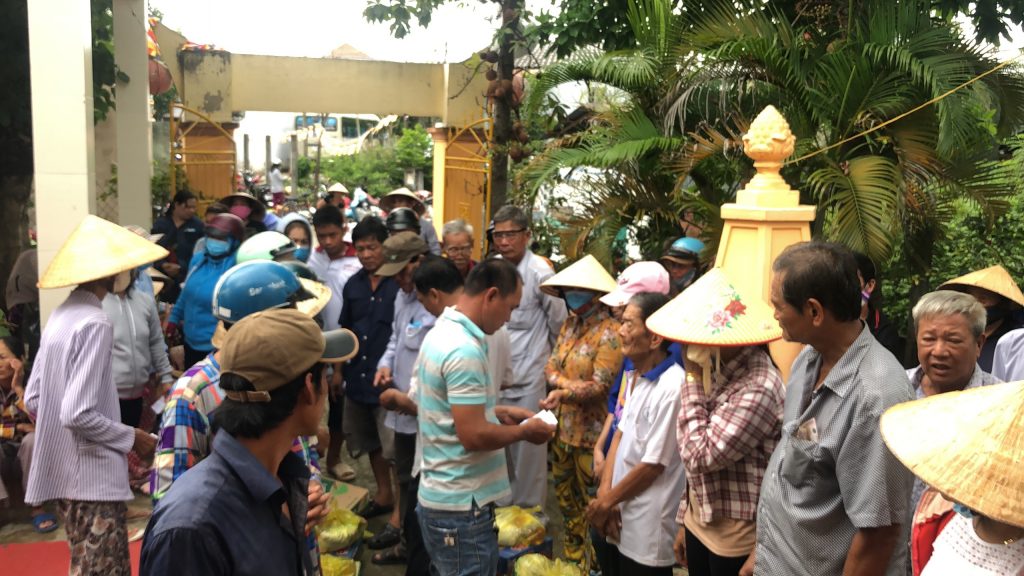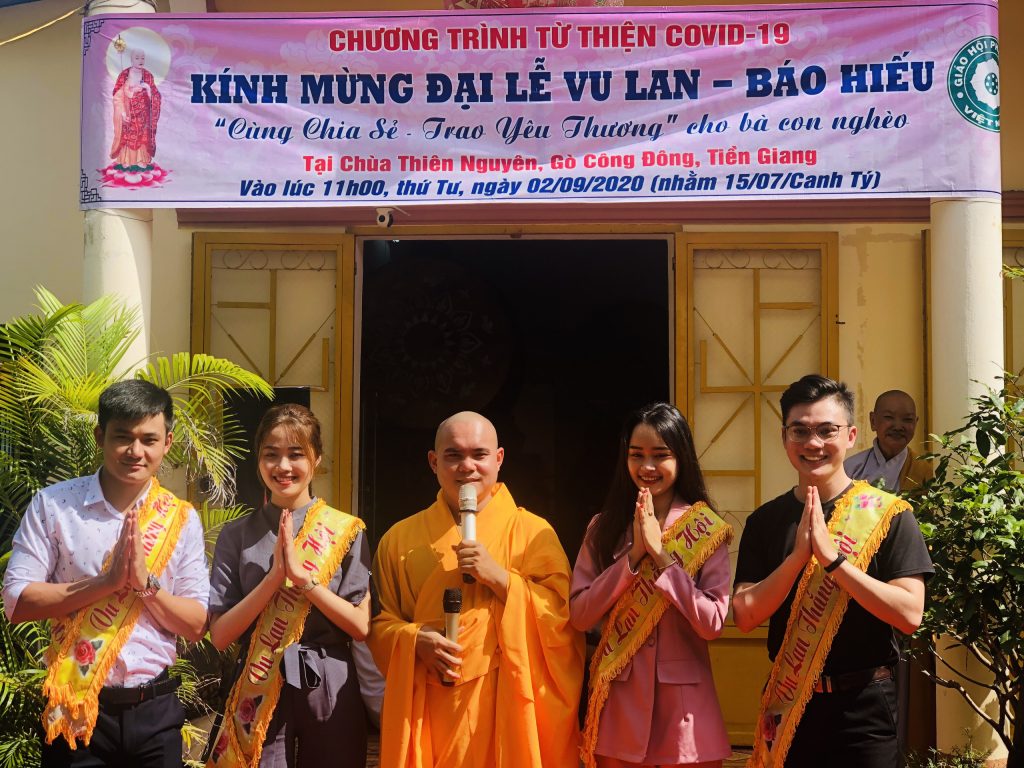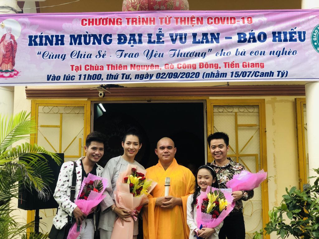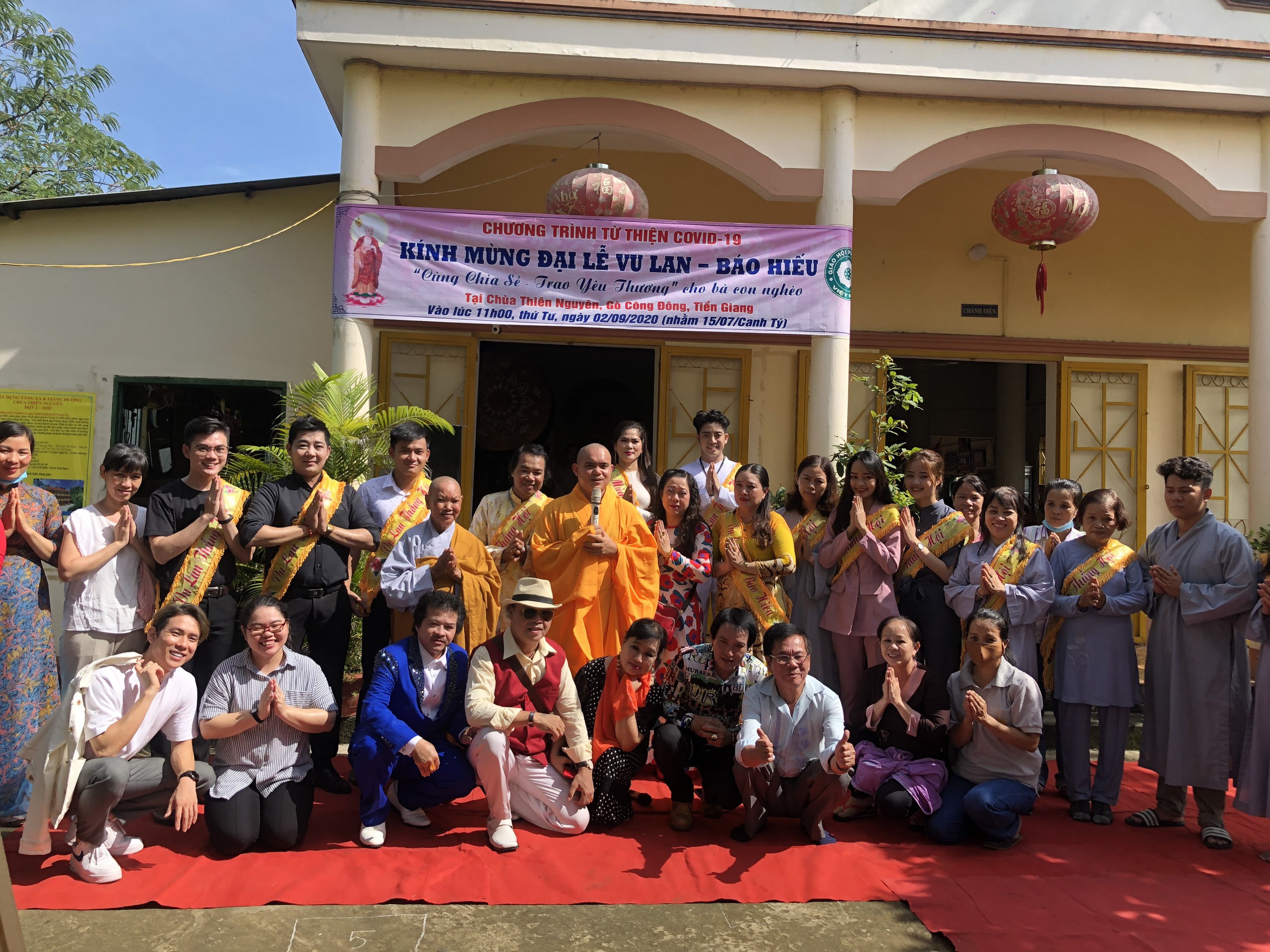 Như tin chúng tôi đã đưa, sau khi trao 150 phần quà trị giá 50 triệu đồng cho bà con nghèo có hoàn cảnh khó khăn tại chùa Nghệ sị Tp Hồ Chí Minh . Sáng ngày 15/07/ Canh Tý (02/09/2020), ĐĐ. Thích Huệ Đạo đã hướng dẫn Phật tử và nhóm văn nghệ sĩ chùa Nghệ sĩ Tp HCM tiếp tục đến Chùa Thiên Nguyên ( Tân Hoà, Gò Công Đông, Tiền Giang) trao tặng 150 phần quà cho bà con nghèo nơi đây. Mỗi phần quà trị giá 300.000 đ gồm: 10 ký gạo, 1 thùng mì, đường, dầu ăn, nước tương, khẩu trang v.v…