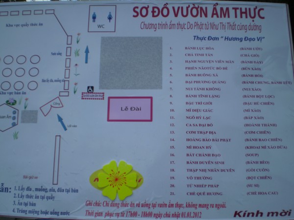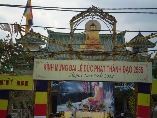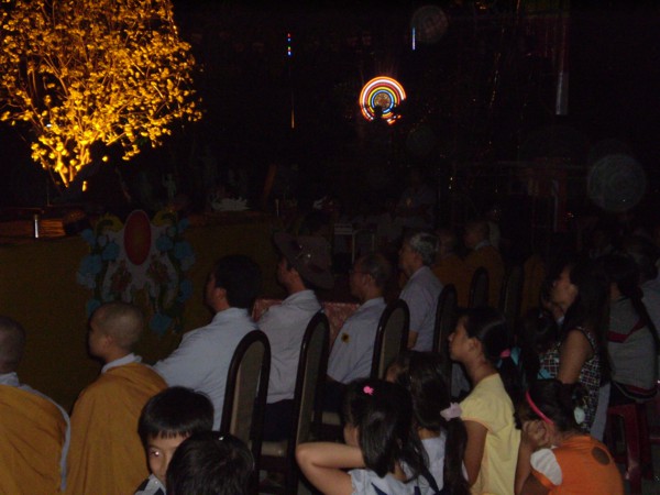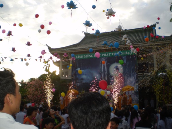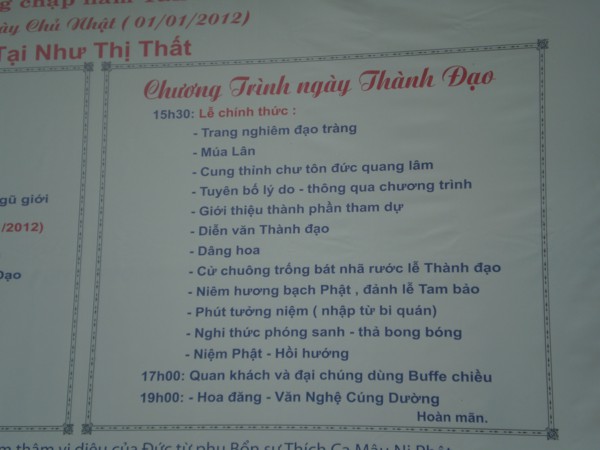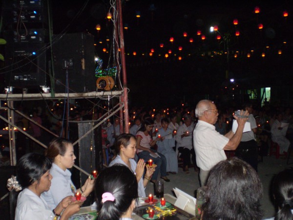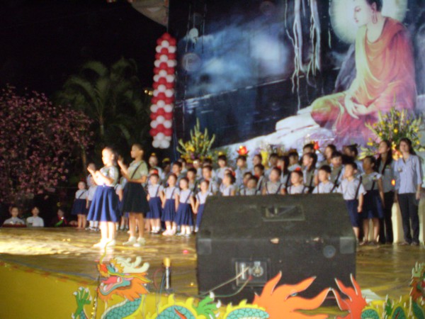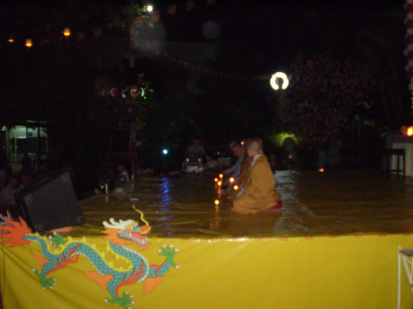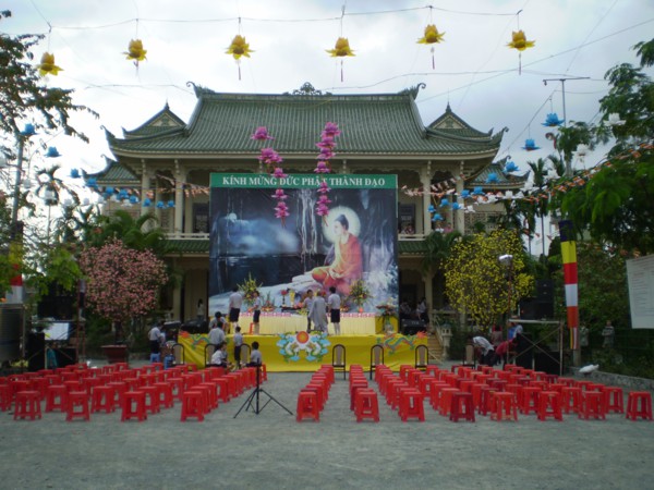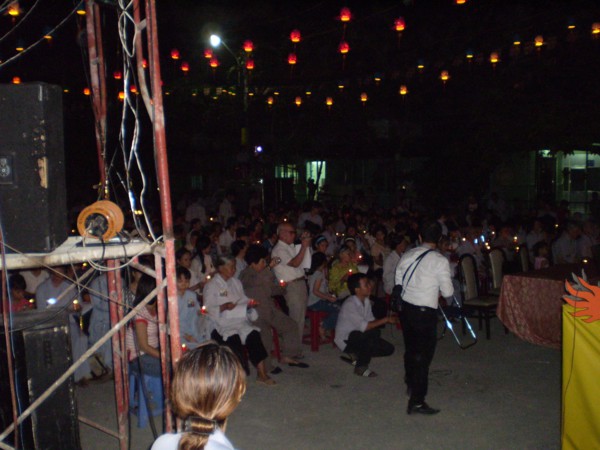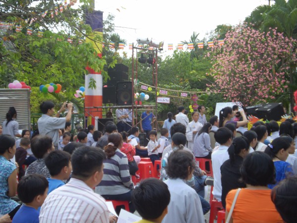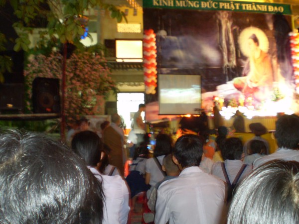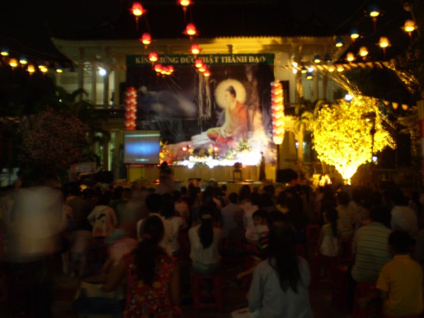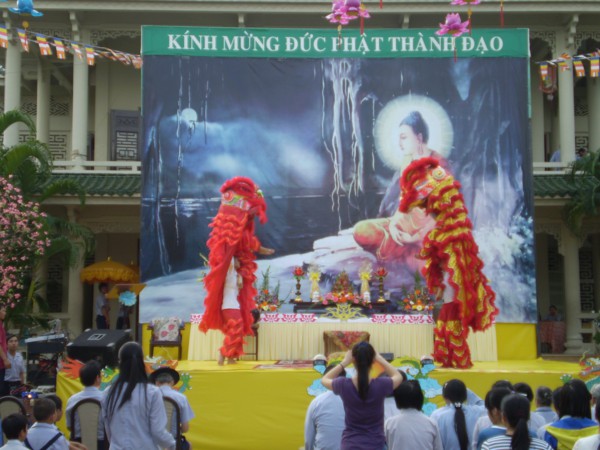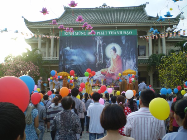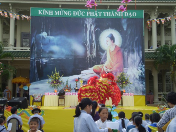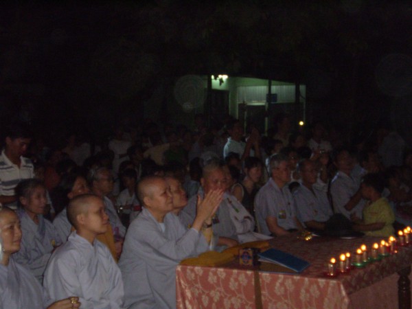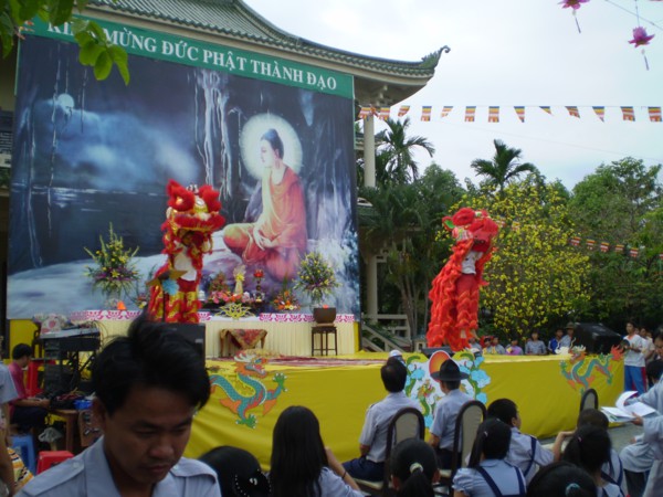 Vào lúc 18 h 30 cùng ngày, Ni sư trụ trì trình chiếu clip ngắn thuyết minh về cuộc đời đức Phật, sau đó là lễ hội hoa đăng, đốt nến cầu nguyện và văn nghệ mừng ngày đức Phật thành đạo.