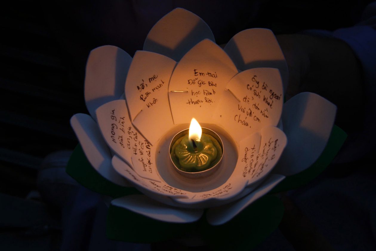 Ánh sáng từ đèn lồng, hoa sen và hoa đăng tạo nên không gian huyền ảo, trang nghiêm.Hoa đăng mang những thông điệp cầu nguyện cho sức khỏe và bình an.Nghi thức này là một trong những hoạt động truyền thống dịp Phật đản, thu hút sự quan tâm không chỉ của Phật tử mà còn của người dân và du khách.Chùa Pháp Hoa lung linh trong đêm hoa đăng mừng Phật đản.Lễ thả hoa đăng tại chùa Pháp Hoa là một trong những hoạt động nổi bật trong chuỗi sự kiện Đại lễ Phật đản tại TPHCM.