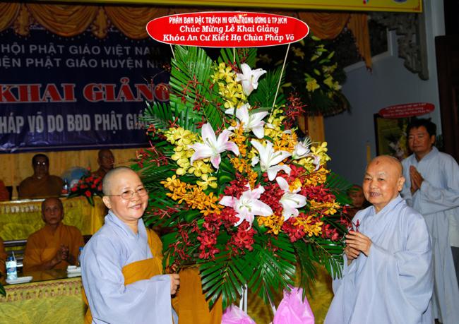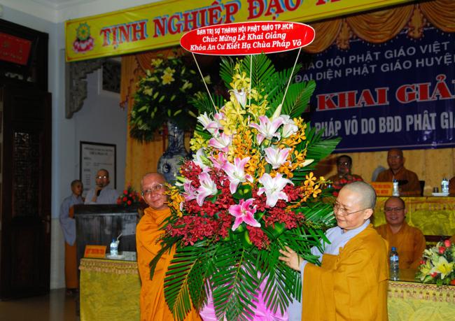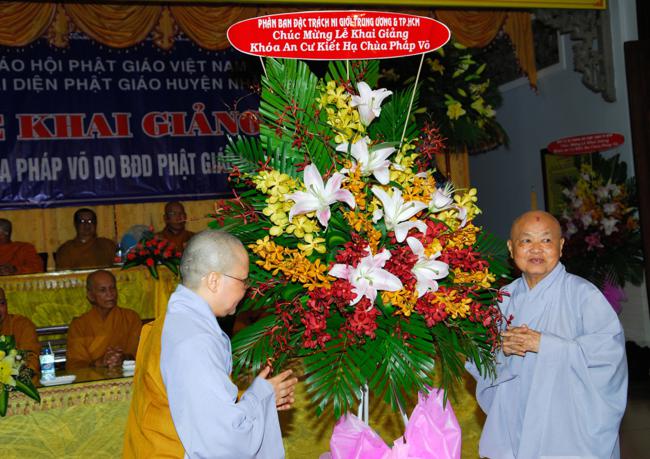 Qua phần cung an chức sự, Ni sư TN.Như Thảo, Thư ký Phân ban Đặc trách Ni giới TP, trụ trì chùa Pháp Võ đã như pháp như luật cung thỉnh ban Chứng minh, ban giảng sư, cũng như ban chức sự, để hạ trường luôn thanh tịnh và để chư ni chúng cấm túc an cư, yên tâm tu học trong ba tháng,