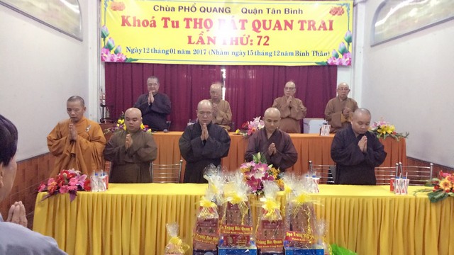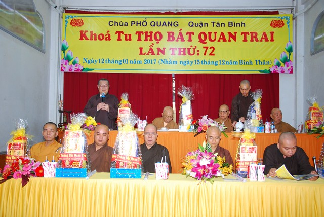 Quang lâm chứng minh và tham dự có sự hiện diện của: HT. Thích Thiện Tánh – Phó Chủ tịch HĐTS, Trưởng BKS TWGHPGVN, Phó Trưởng Ban TT BTS GHPGVN TP.HCM; HT. Thích Tịnh Hạnh – UVTT HĐTS TWGHPGVN, Phó BTS kiêm Trưởng ban KT- TC GHPGVN TPHCM; HT. Thích Như Tín – Phó BTS kiêm Trưởng BKS GHPGVN TPHCM; HT. Thích Minh Chơn – Phó BTS kiêm Trưởng BHP GHPGVN TPHCM; cùng Chư Tôn Thiền Đức Văn Phòng BTS, Chư Tôn Đức Giảng Sư đoàn, Ban Quản Trị, Ban tổ chức khóa tu và trên 200 quý Phật tử tu học tại chùa Phổ Quang tham dự.