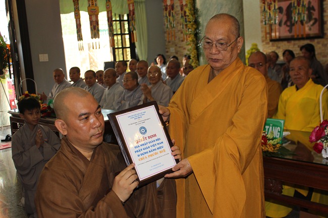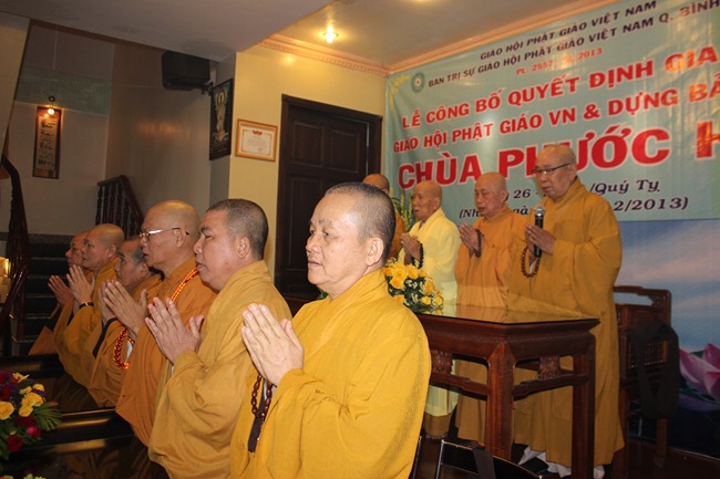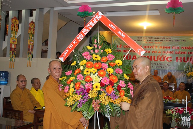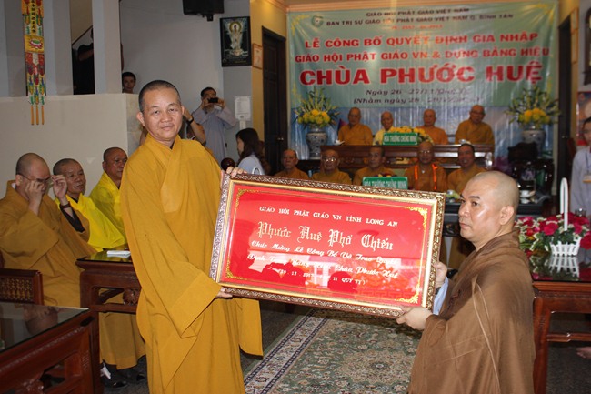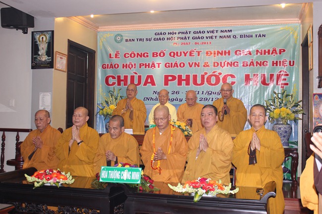 Buổi lễ chính thức trao quyết định dựng bảng hiệu chùa Phước Huệ diễn ra vào ngày (29/12/2013) lúc 8h30”, với sự chứng minh của Ban thường Trực BTS GHPGVN TP.HCM và có sự tham dự của Chính quyền địa phương.