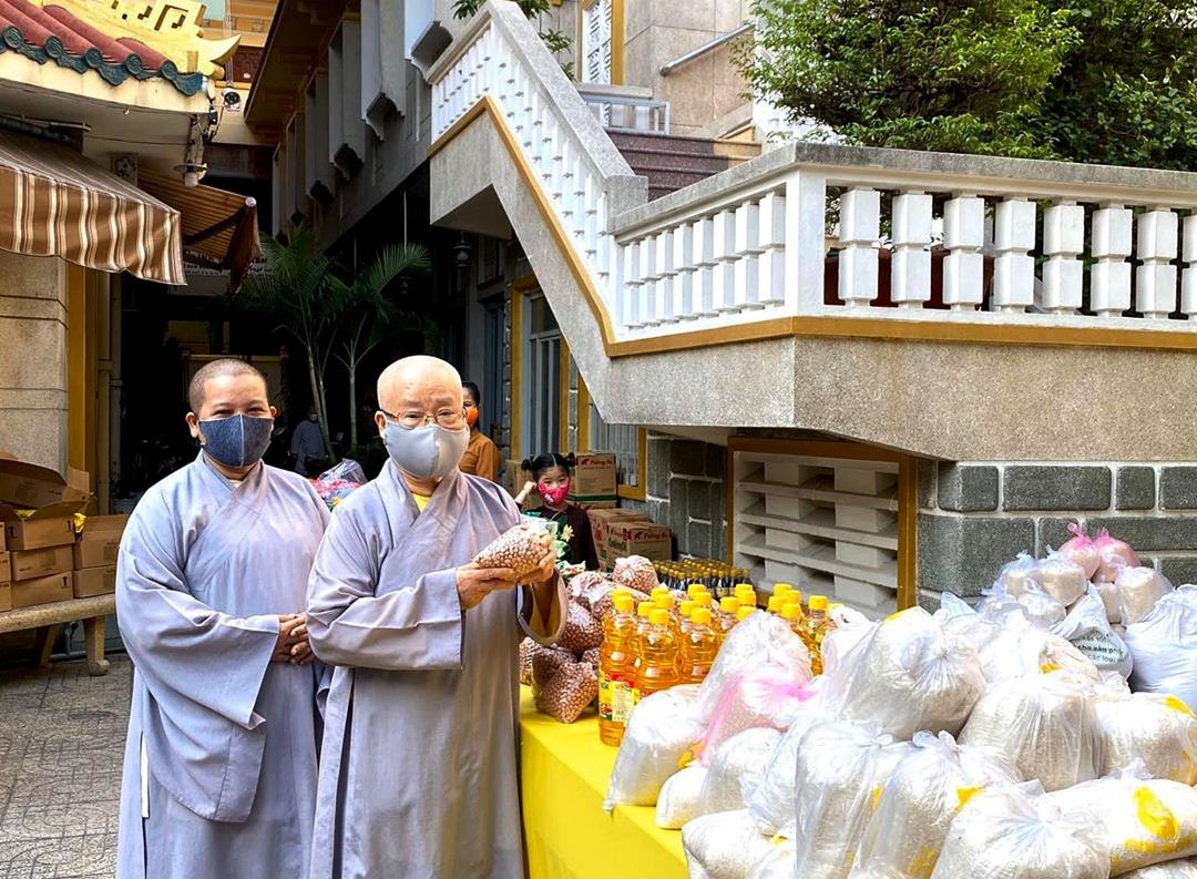 Sáng ngày 21/04, chư Ni chùa Từ Nghiêm (Q.10) tổ chức Siêu thị Hạnh phúc 0 đồng cho đồng bào nghèo trong quận.
