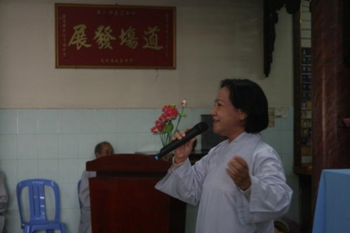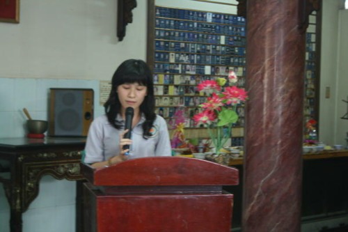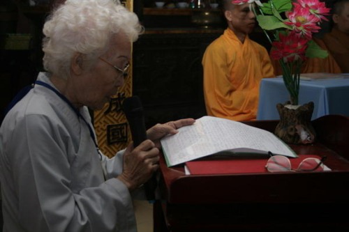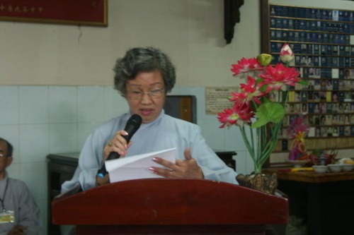 B . Diệu Chân – Trưởng Ban Đạo tràng Tu Bát quan trai báo cáo