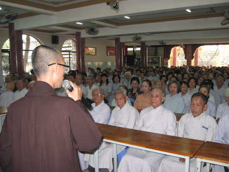 Từ Tâm – Phó thư ký CLB TNPT TP. HCM đọc báo cáo Phật sự của CLB sinh hoạt tại chùa Từ Tân