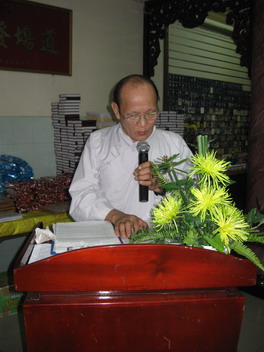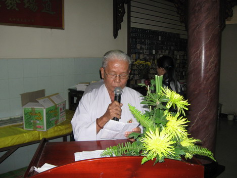 Bác Nguyên Trừng – Gia trưởng Gia đình Phật tử Từ Tân đọc báo cáo của Gia đình Phật tử