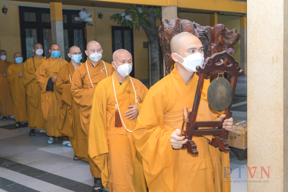 Trong tiếng chuông trầm hùng được thỉnh vang vọng khắp giới, chư Tăng và đại chúng hướng tâm cầu nguyện cho chư hương linh tử vọng do dịch bệnh Covid vừa qua được sớm siêu sanh niềm lạc cảnh.