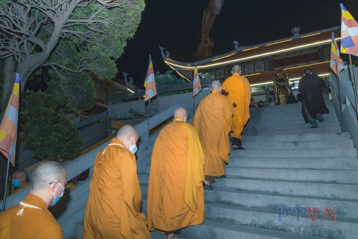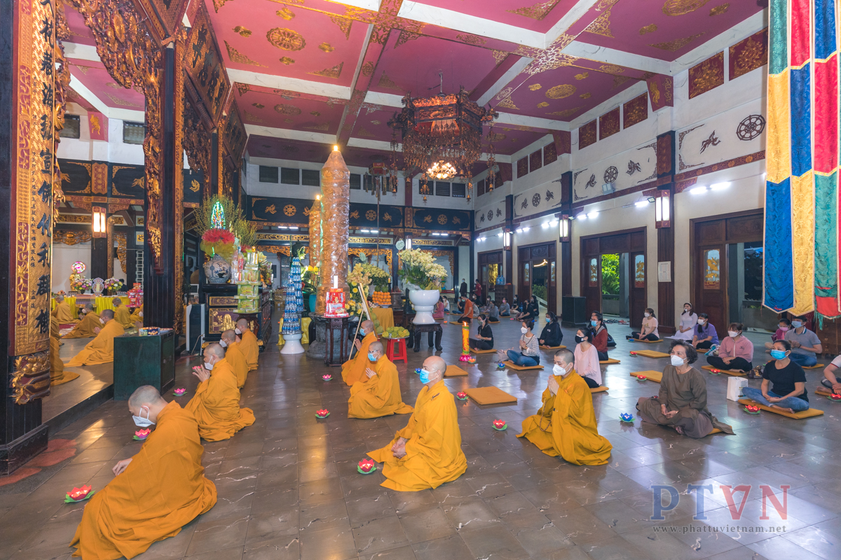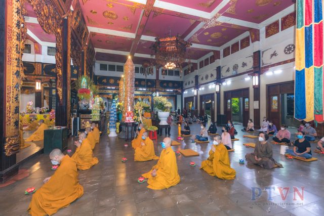 PTVN – Tối ngày 18/11/2021, chư Tăng và Phật tử tổ đình Vĩnh Nghiêm (quận 3, TP.HCM) đã trang nghiêm cử hành lễ tưởng niệm cán bộ, chiến sĩ hy sinh, đồng bào tử vong trong đại dịch Covid-19.