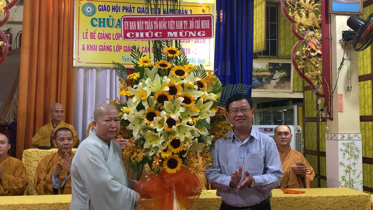 Đến chứng minh và tham dự buổi lễ có sự hiện diện của Hoà thượng Thích Thiện Tấn – Chứng minh BTS GHPGVN quận 8; Thượng tọa Thích Thiện Quý – Ủy viên HĐTS TW GHPGVN, Phó Trưởng Ban Trị sự, kiêm Chánh Thư ký BTS Tp. HCM; Hoà thượng Thích Chơn Không – Ủy viên Thường trực BTS, Trưởng Ban Hoằng Pháp Tp. HCM; Hoà thượng Thích Nhật Hỷ – Ủy viên HĐTS TW GHPGVN, Trưởng Ban Hoằng Pháp Tp. HCM; Thượng tọa Thích Trung Nguyện – Ủy viên HĐTS TW GHPGVN, Phó Thư ký BTS Tp. HCM; Thượng tọa Thích Đức Trường – Ủy viên HĐTS TW GHPGVN, Phó Trưởng Ban Hoằng Pháp Tp. HCM ; Đại đức Thích Thiện Chơn – Ủy viên Ban Giáo dục Phật giáo TW… cùng chư tôn đức giảng viên lớp học.